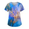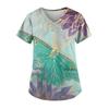 Рабочая форма больших размеров с принтом, топы для женщин, футболки с v-образным вырезом и короткими рукавами, рабочая одежда, футболка с карманами