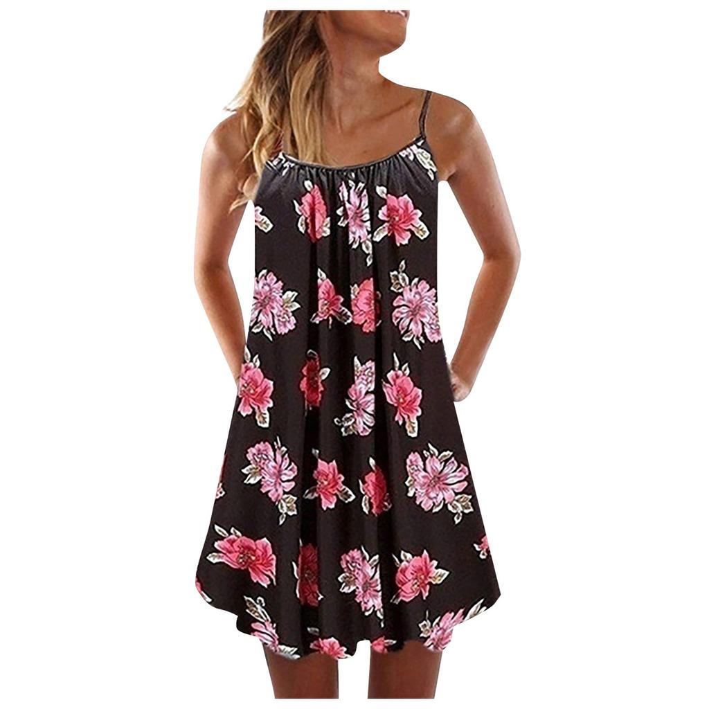 Женская мода, летний повседневный жилет без рукавов с богемным принтом, свободное платье на бретелях, большое платье