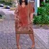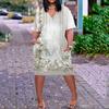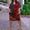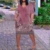 Лето плюс размер V-образным вырезом с короткими рукавами и карманами до колена с принтами повседневное платье для женщин