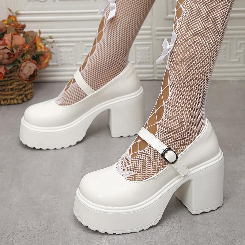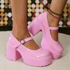 Туфли Мэри Джейн на толстой платформе Y2K, женские туфли на очень высоком каблуке, лакированные туфли-лодочки, женские туфли для вечеринок с пряжкой на щиколотке и толстым каблуком 42