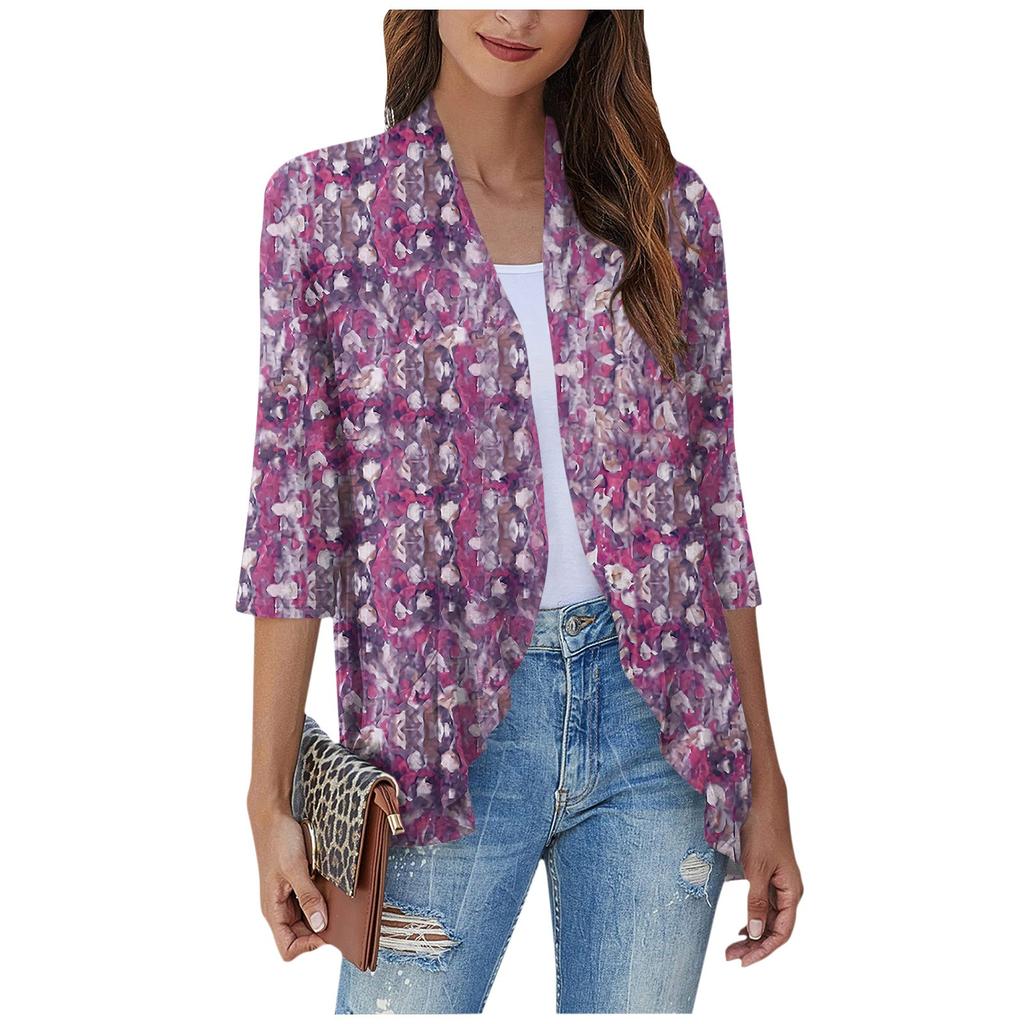 Женский повседневный повседневный кардиган с укороченными рукавами и v-образным вырезом, модная рубашка с принтом, топ, мягкая драпировка, кардиган с рюшами