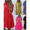 Женская мода плюс размер, однотонное хлопковое льняное платье с отложным воротником, свободное платье-рубашка