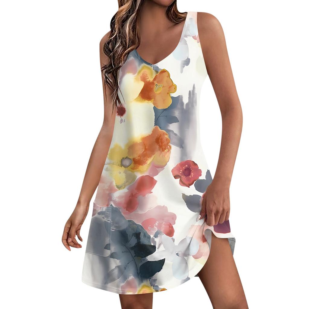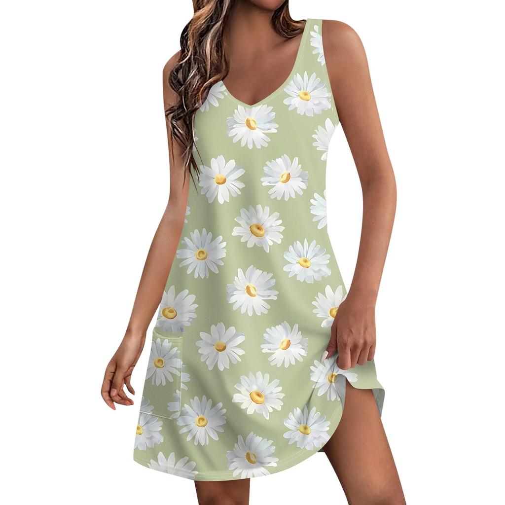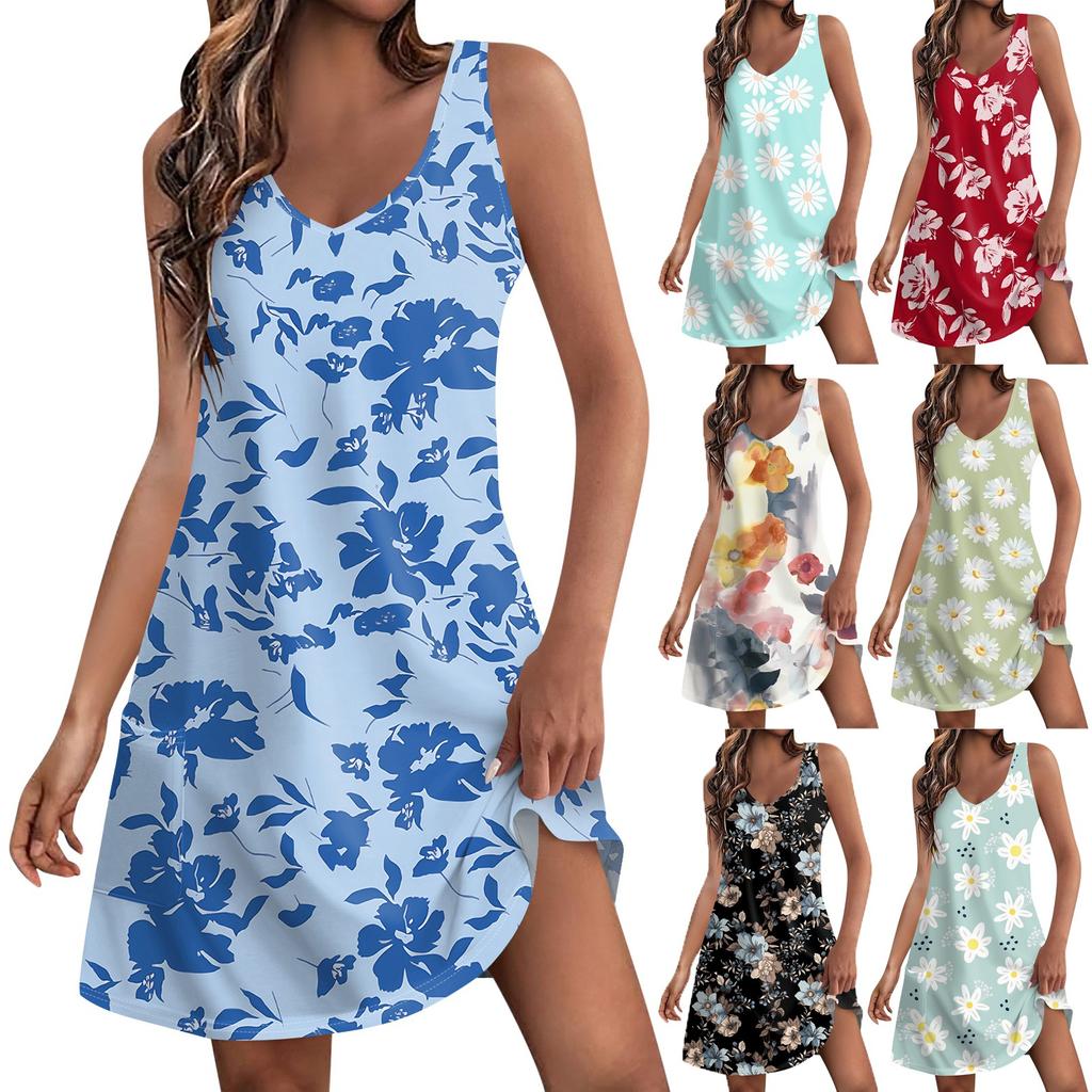 Женское повседневное летнее богемное пляжное платье с принтом и карманами, V-образным вырезом, платье-майка