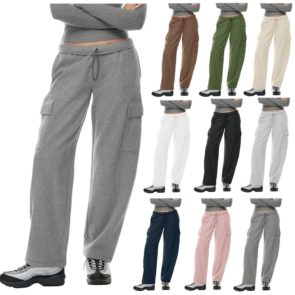 Женские повседневные мешковатые брюки для бега с высокой талией и прямыми штанинами на завязках, спортивные штаны с карманами