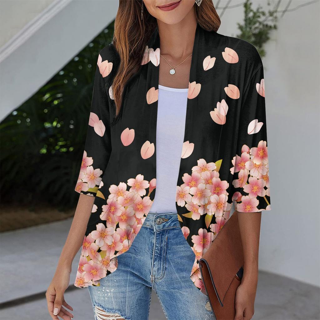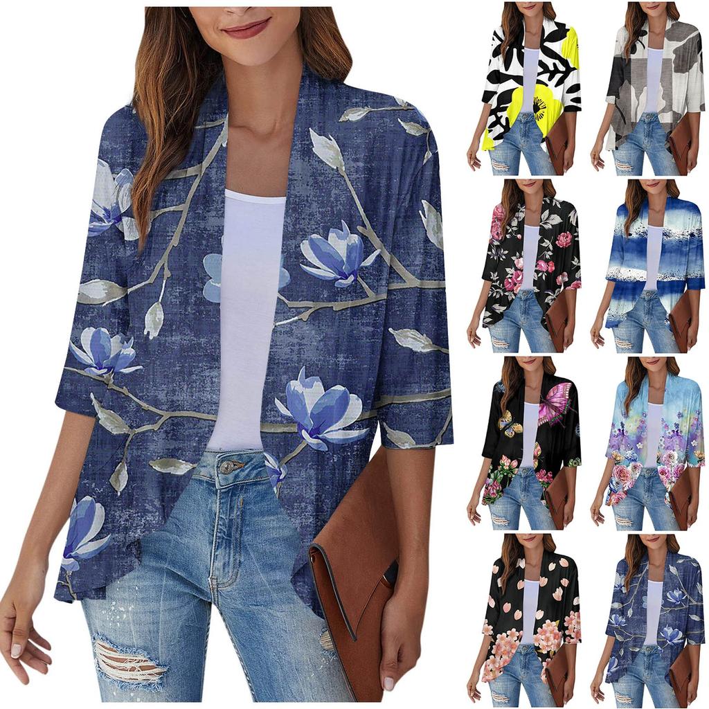 Женский кардиган, свободная повседневная кружевная рубашка с короткими рукавами и принтом, верхнее пальто