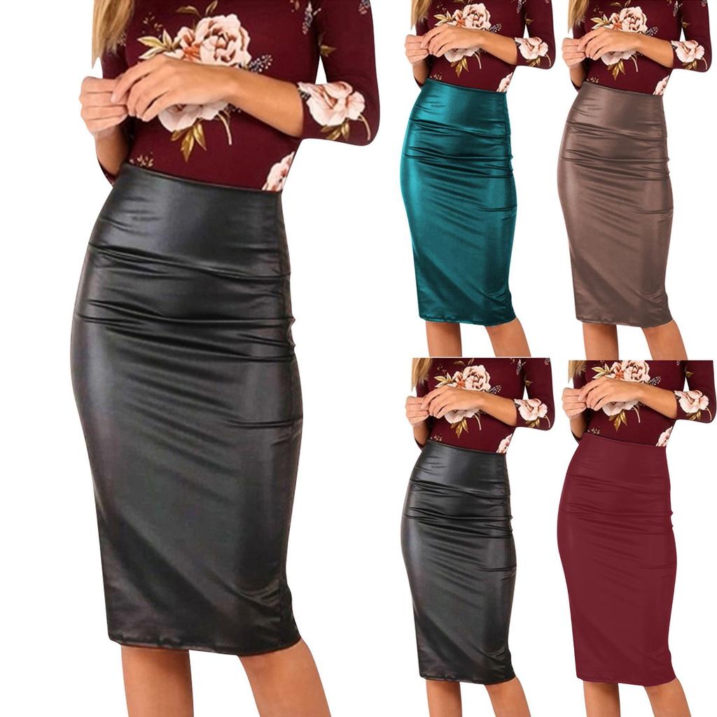 Юбка-карандаш из искусственной кожи длиной ниже колена Юбка-миди для женщин