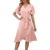 Летнее женское атласное удобное и сексуальное платье с v-образным вырезом и расклешенными рукавами на талии