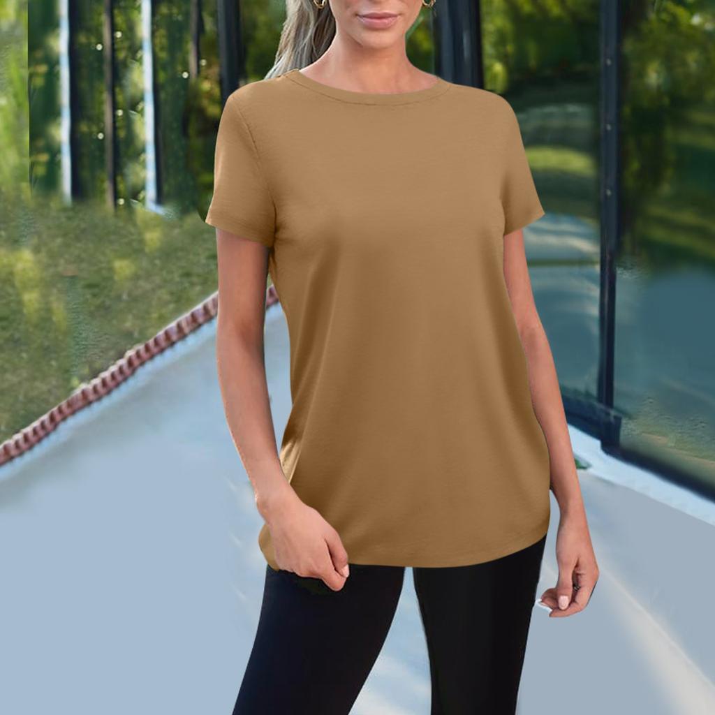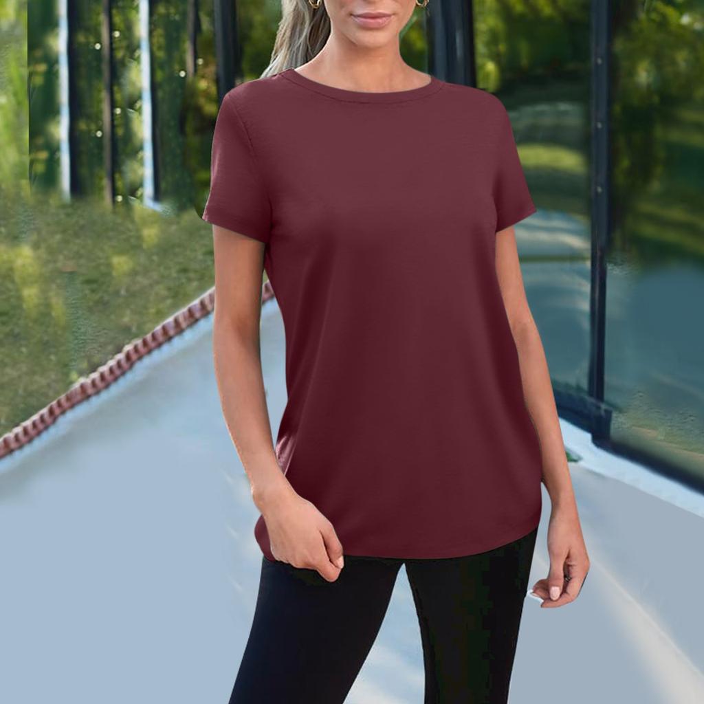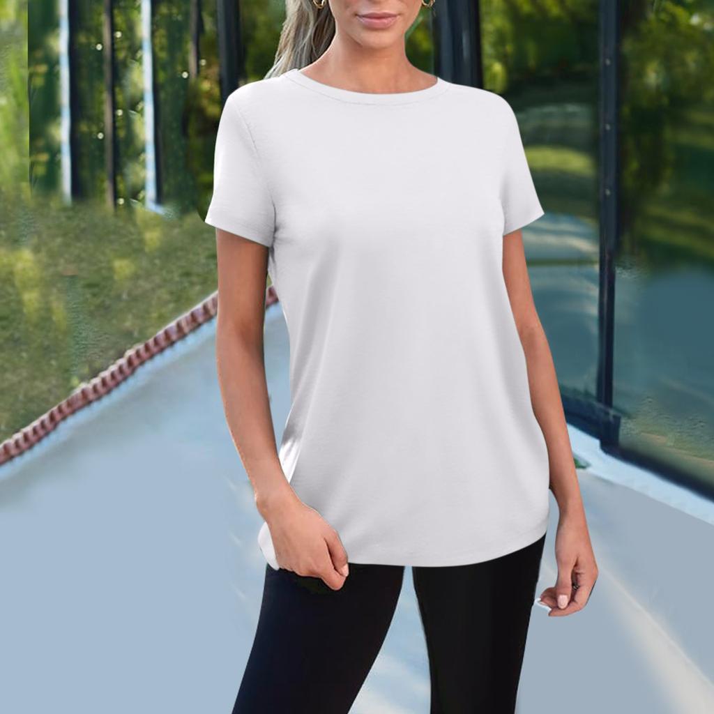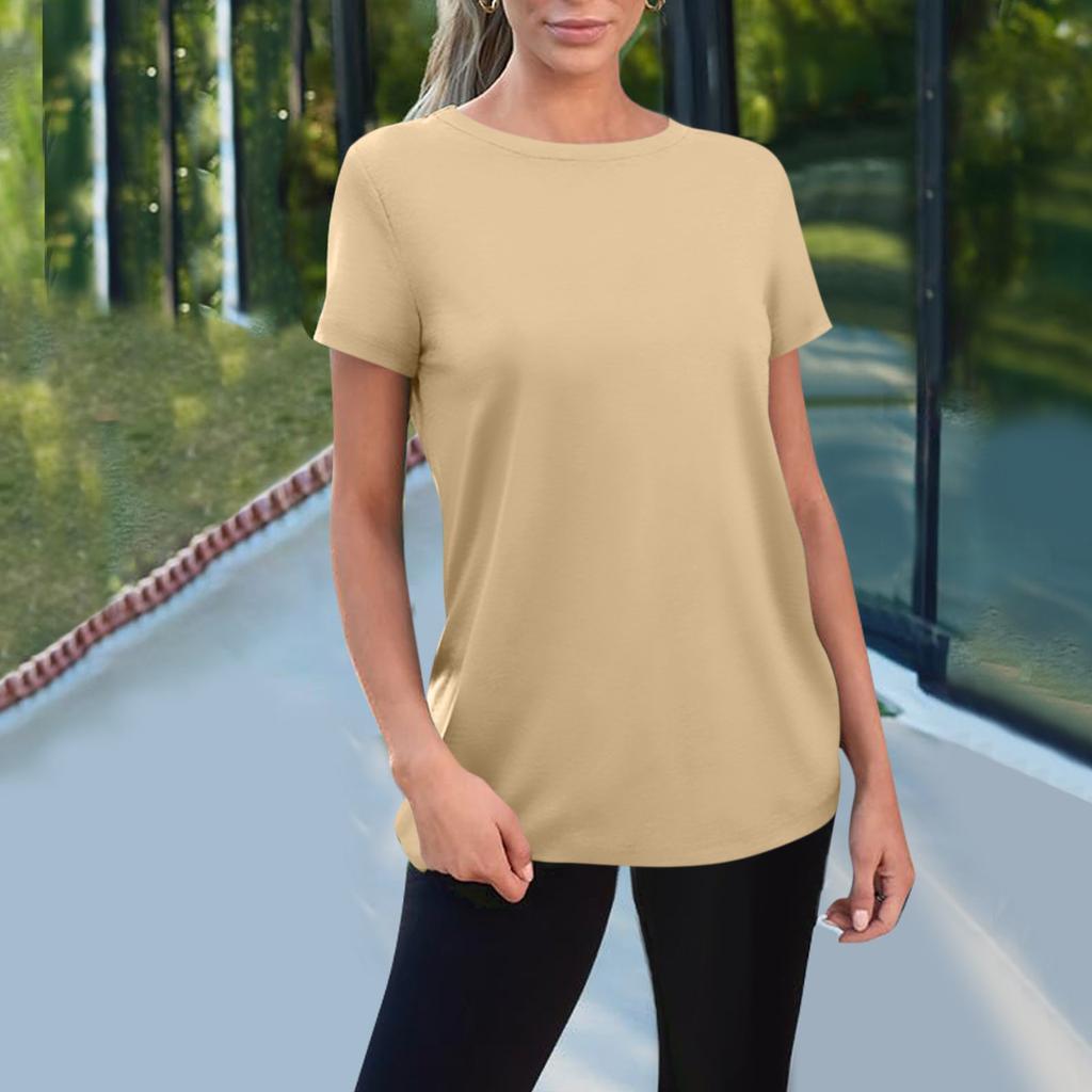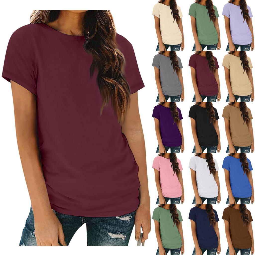 Женские футболки, базовые футболки с короткими рукавами, модные топы с круглым вырезом, свободный крой, легкий повседневный летний топ