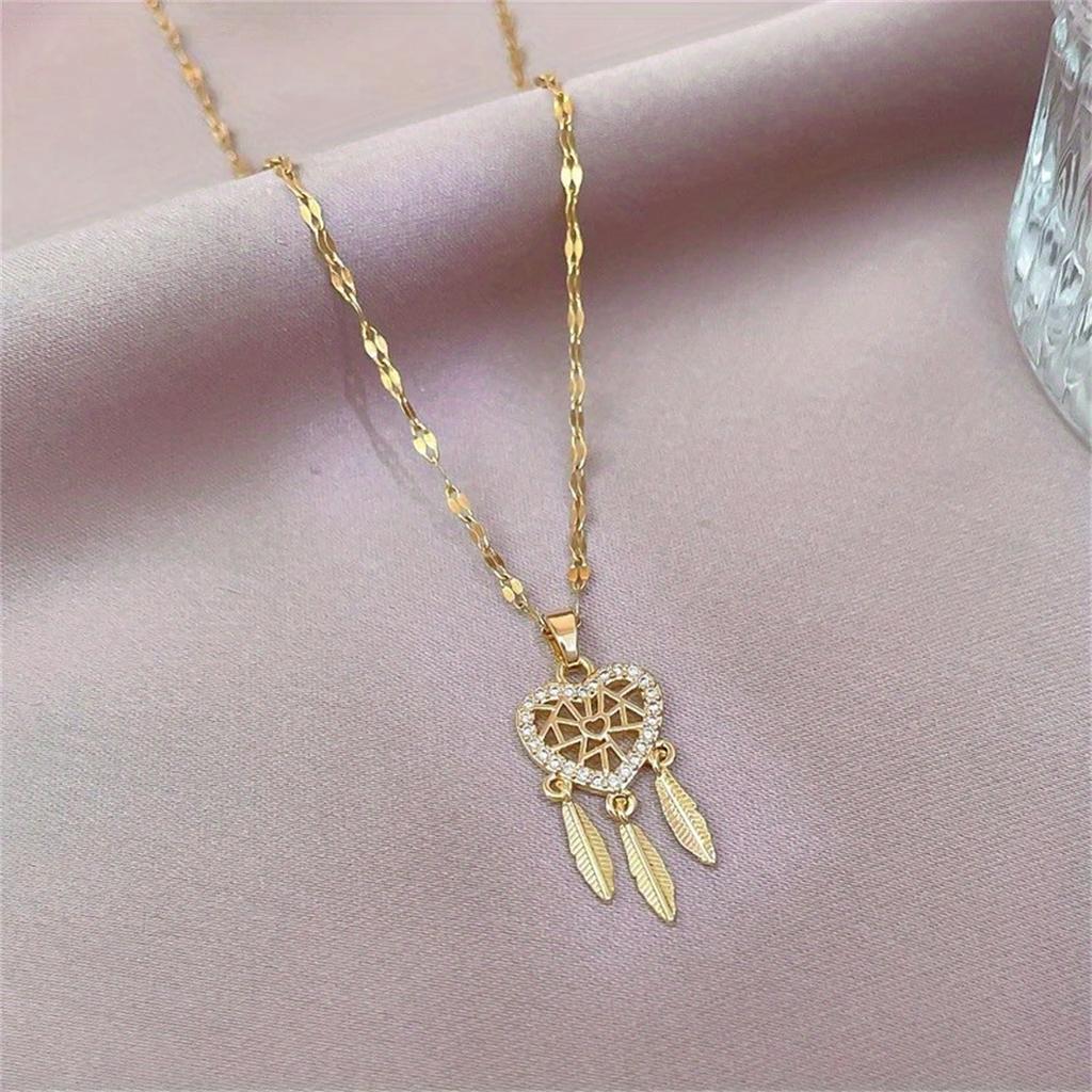 Изысканное ожерелье с подвеской в виде листьев в форме сердца, инкрустированное стразами. Идеальный аксессуар для повседневной носки, вечеринок и модных подарков.