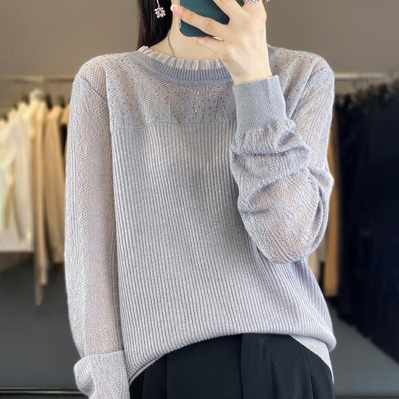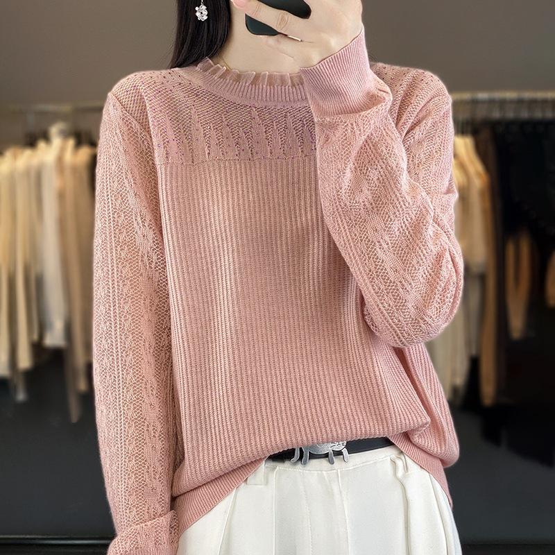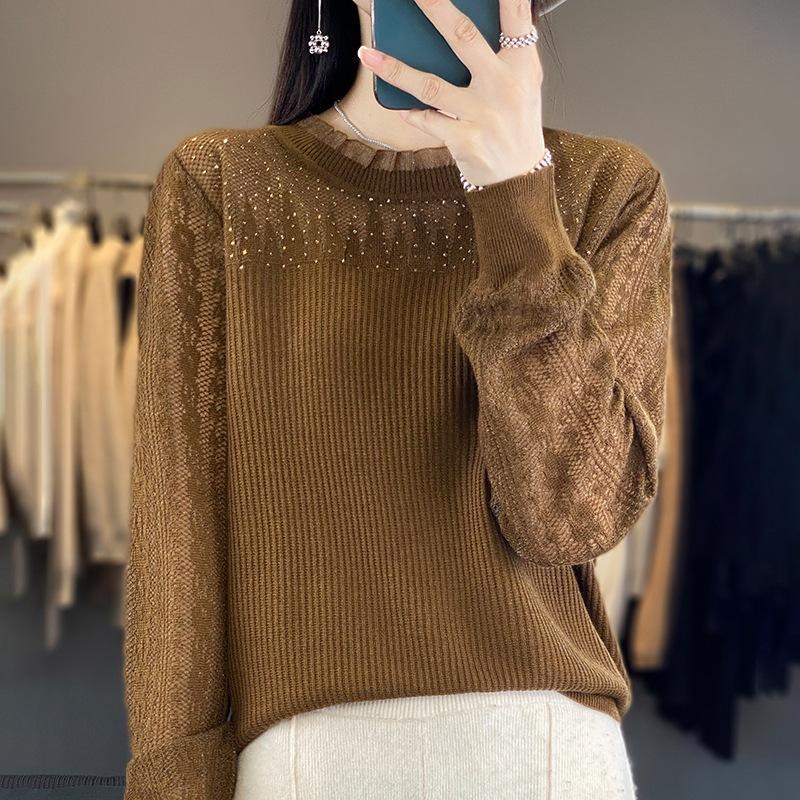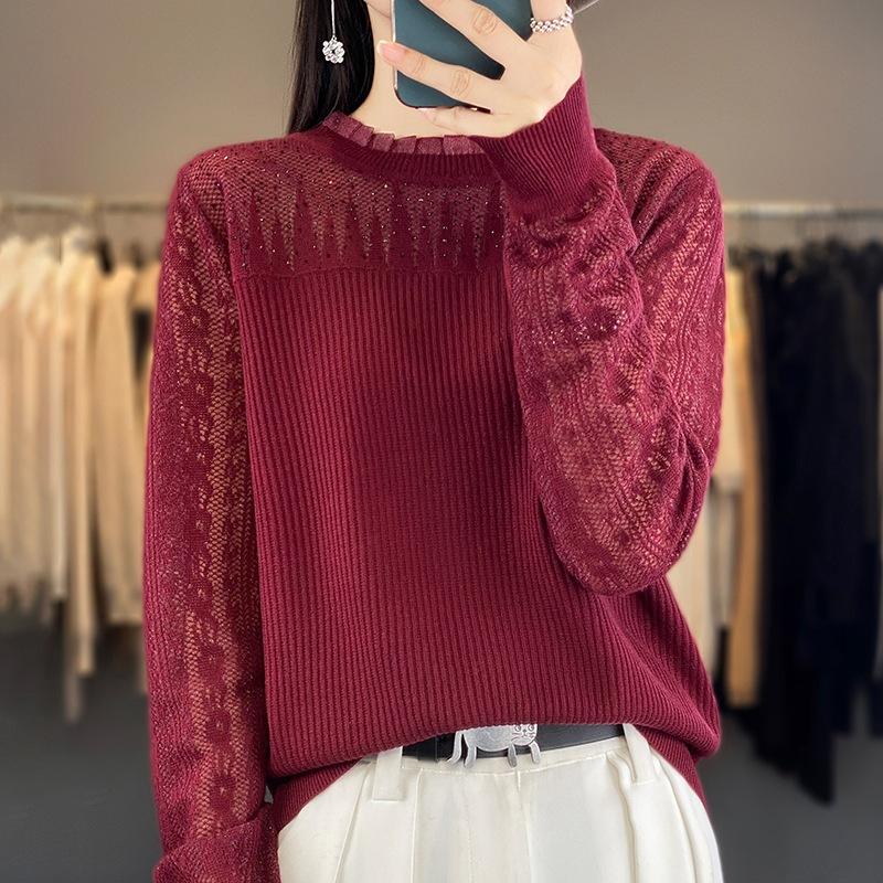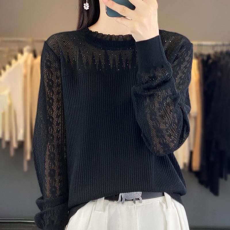 Весенне-осенняя вязаная нижняя рубашка с кружевным воротником, шерстяной тонкий свитер со скелетом