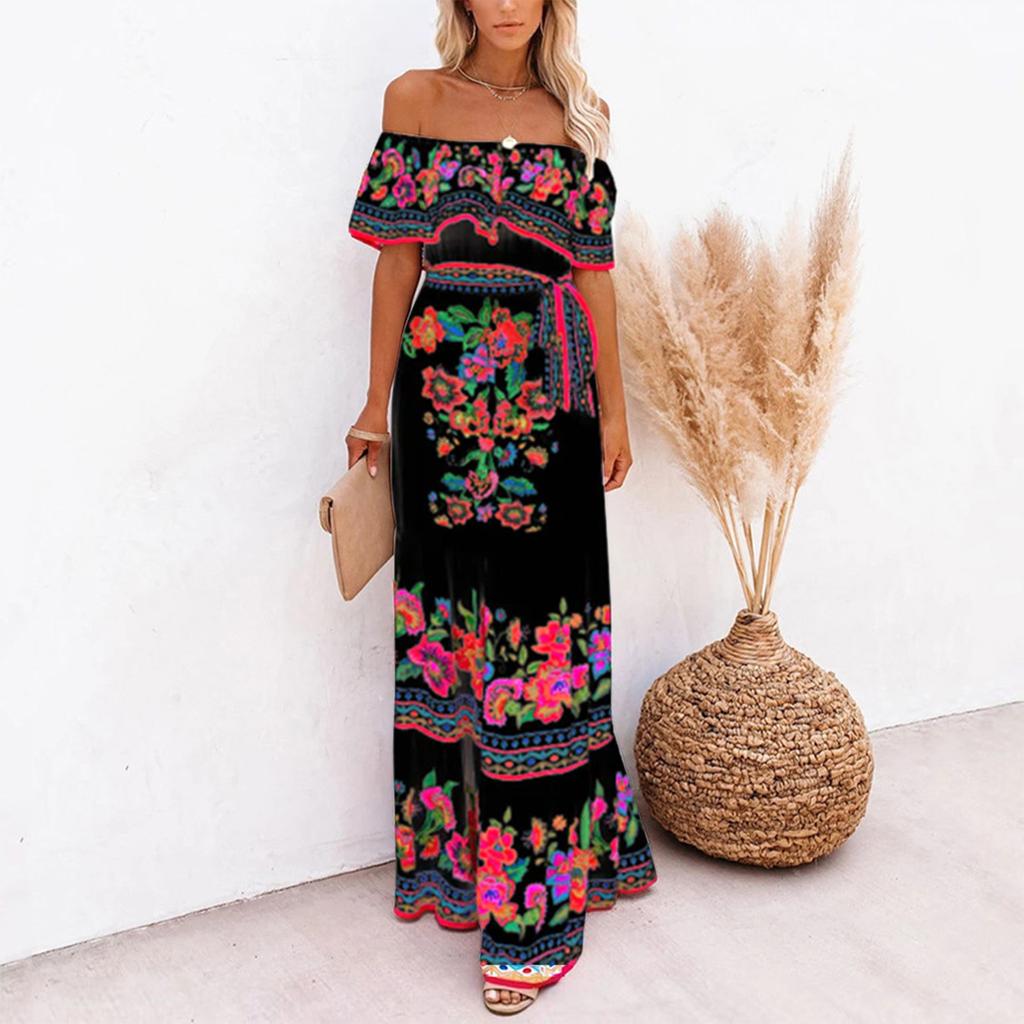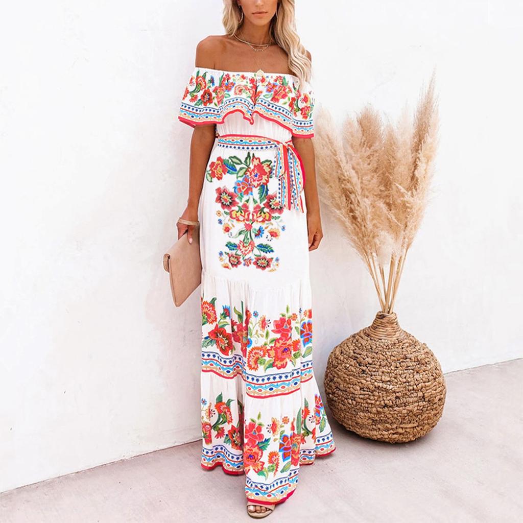 Модное женское повседневное летнее свободное платье с эластичной талией и принтом на талии