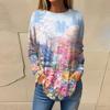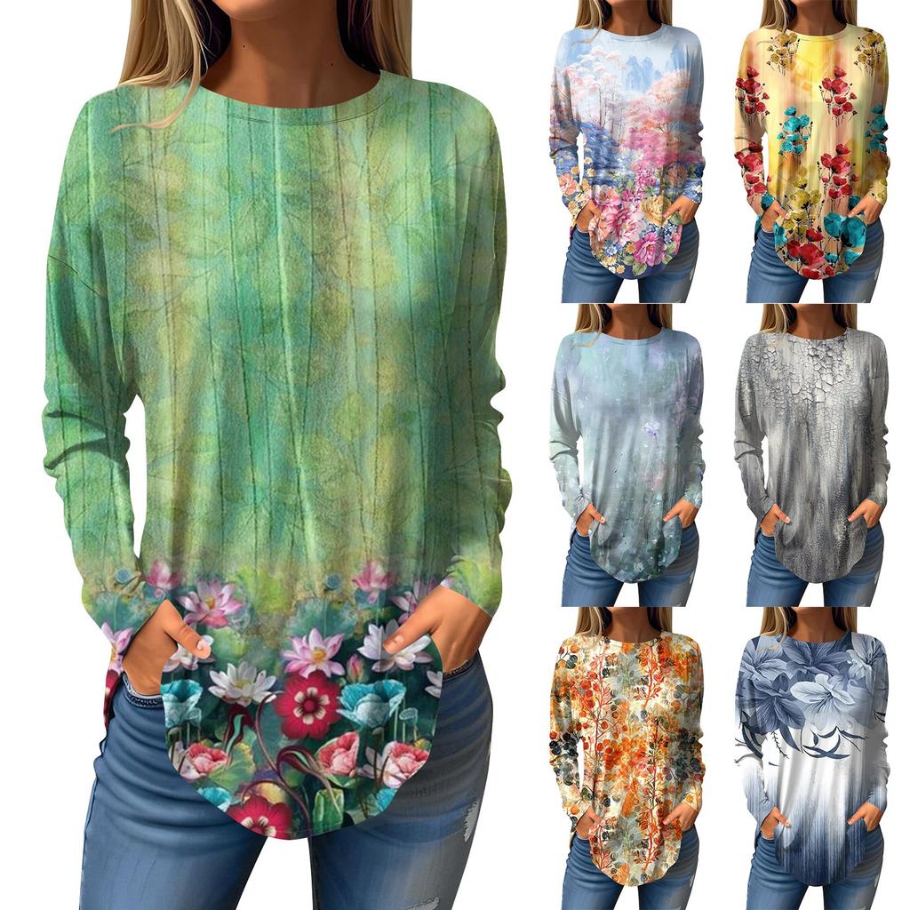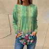 Футболки для женщин, осенний повседневный модный топ с длинным рукавом, пуловер с принтом, топ