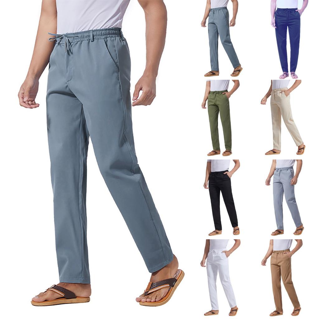 Мужские комбинезоны, повседневные брюки с завязками, походные брюки, хлопковые саржевые брюки прямого кроя, современные эластичные брюки с завязками