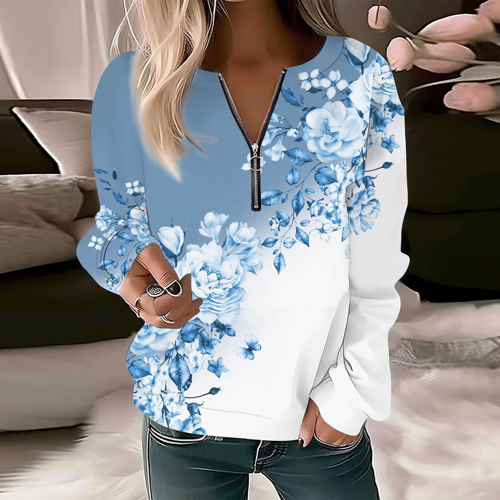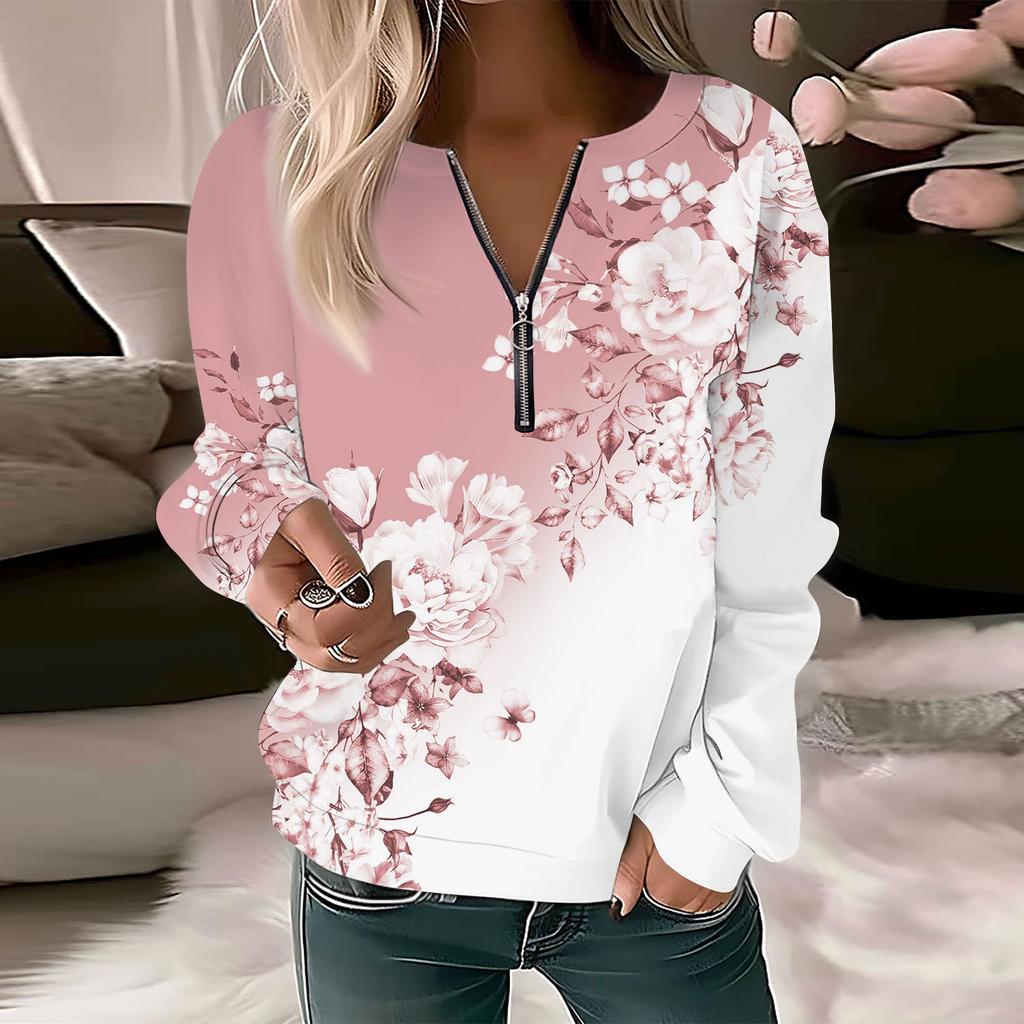 Женская толстовка, пуловер, базовая четверть, молния с длинным рукавом и принтом цветов, толстовка с капюшоном, повседневный топ