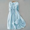 Повседневное универсальное однотонное платье из хлопка и льна — купить товар онлайн с бесплатной доставкой до всему миру!