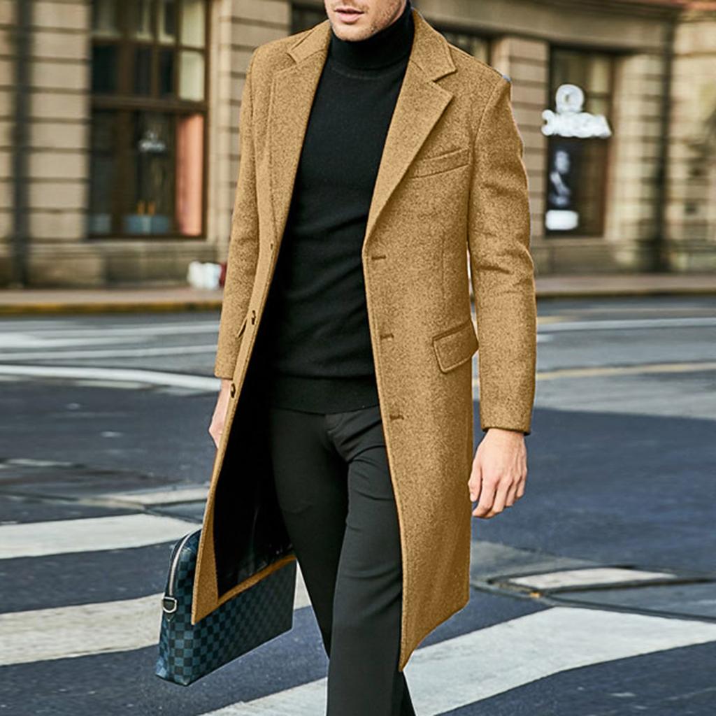 Мужское однотонное длинное пальто в британском стиле, модное теплое шерстяное пальто