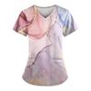 Женская мода, рабочая одежда с v-образным вырезом, короткими рукавами и карманами, топы с принтом, летние топы для женщин