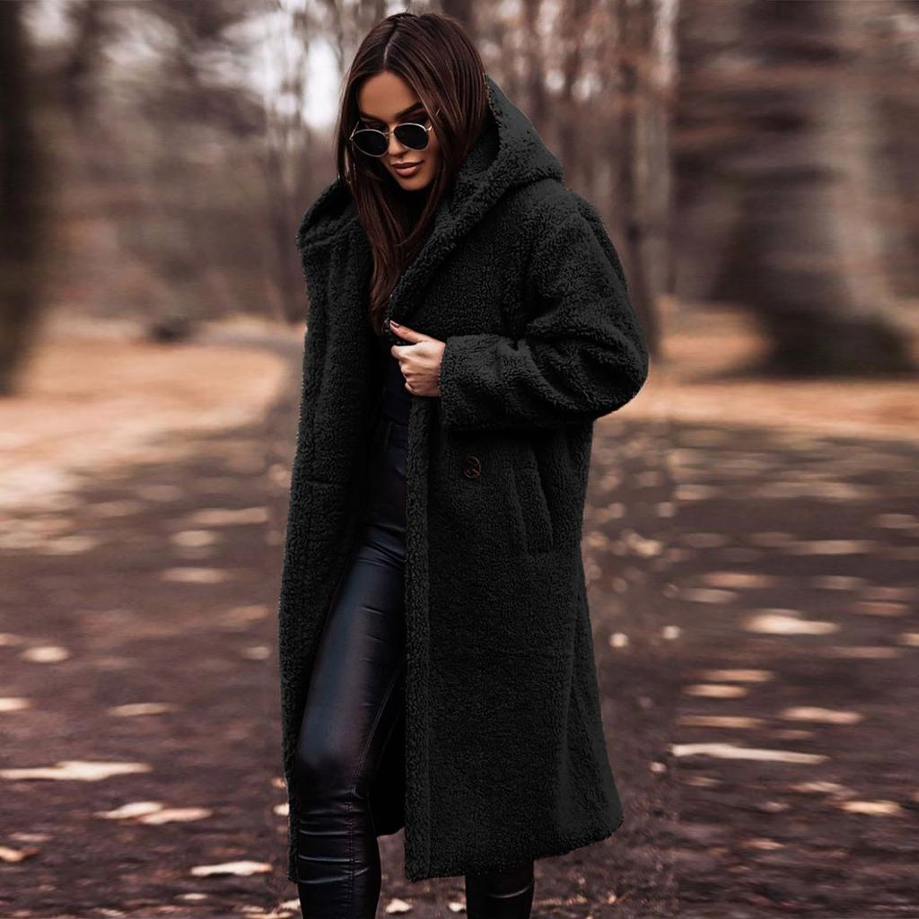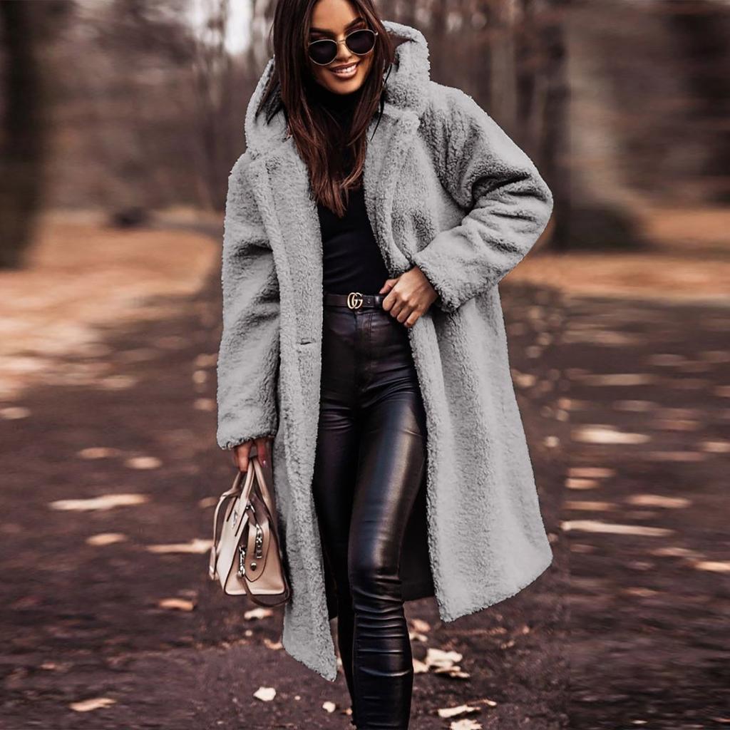 Женское длинное осенне-зимнее однотонное шерстяное женское пальто с длинными рукавами