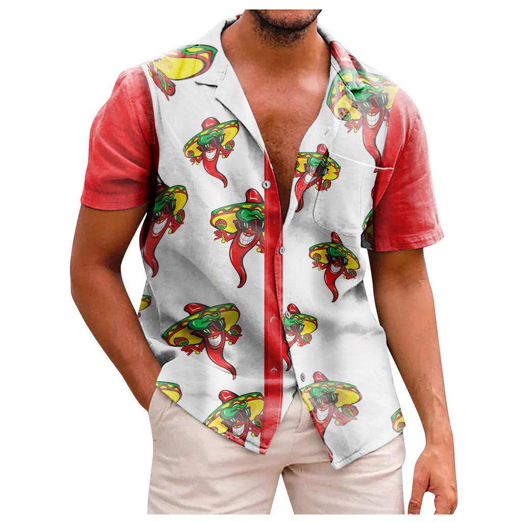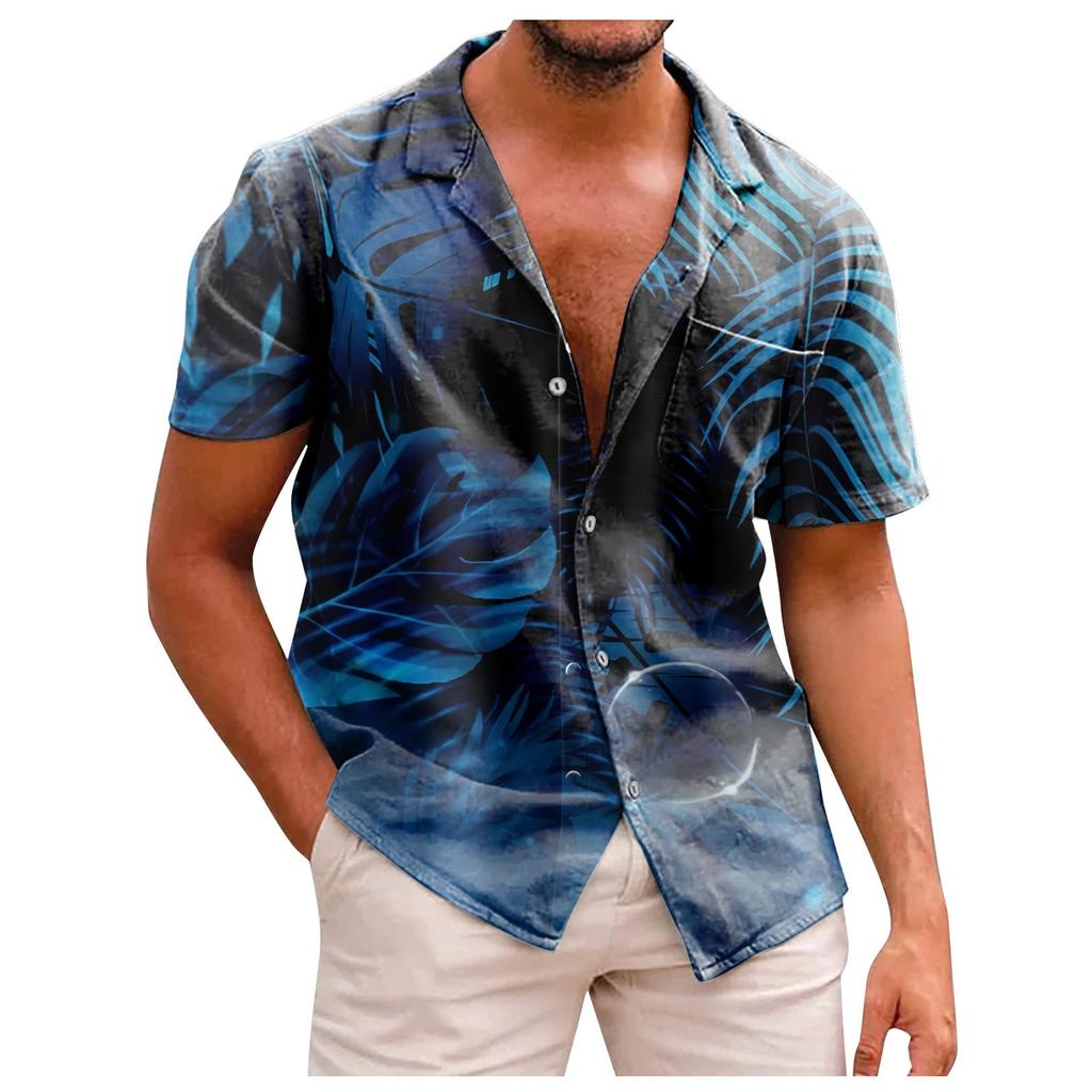 Новая летняя мужская облегающая рубашка с принтом, большая модная повседневная мужская рубашка с коротким рукавом