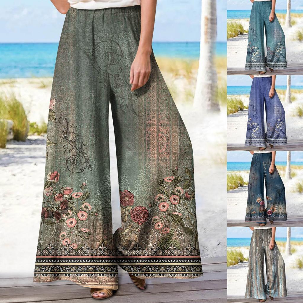Женские летние свободные повседневные широкие брюки с эластичной резинкой на талии и брюками — купить товар онлайн с бесплатной доставкой до всему миру!