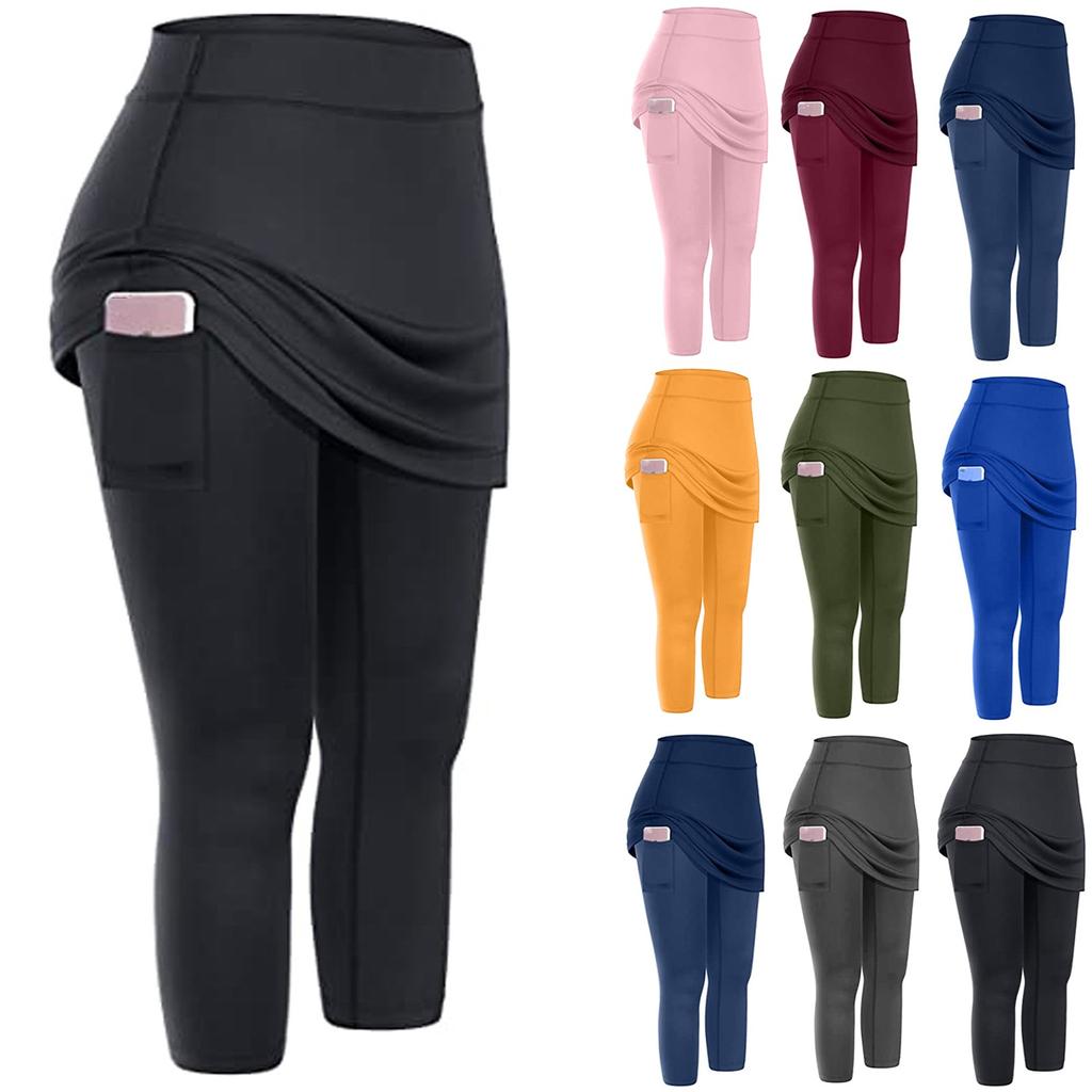 Женские леггинсы с теннисной юбкой и карманами, эластичные спортивные юбки-капри для йоги, леггинсы — купить товар онлайн с бесплатной доставкой до всему миру!