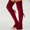 Женские шерстяные грелки для ног, осень/зима, однотонные чулки выше колена с завязками, средние носки, ворсовые носки