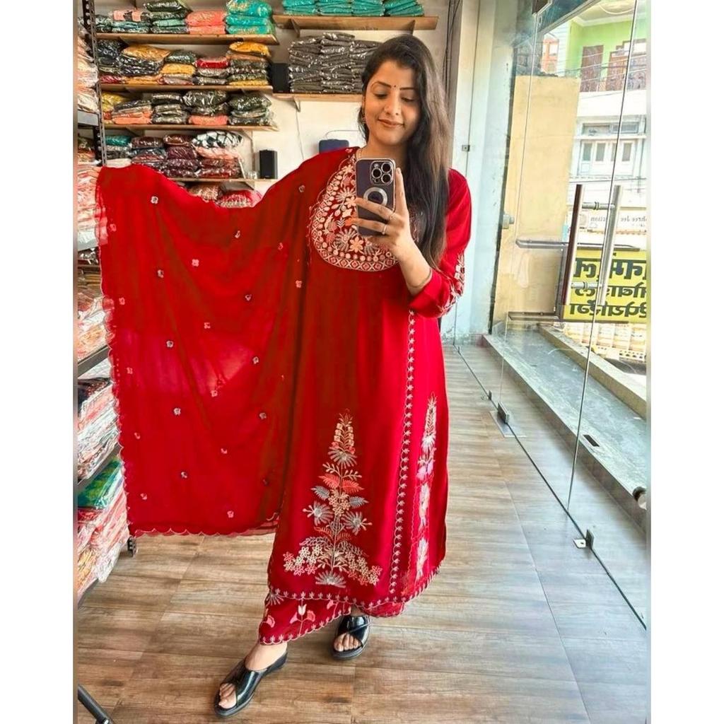 *14 новых привлекательных нарядов для вечеринок с вышивкой разных цветов Fox Georgette Kurti Plazzo имеют стандартный крой и изготовлены из высококачественных тканей и пряжи*