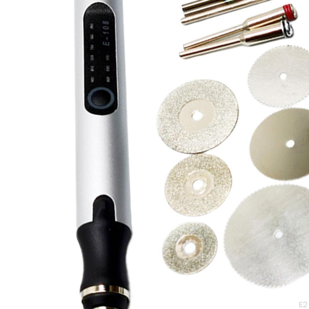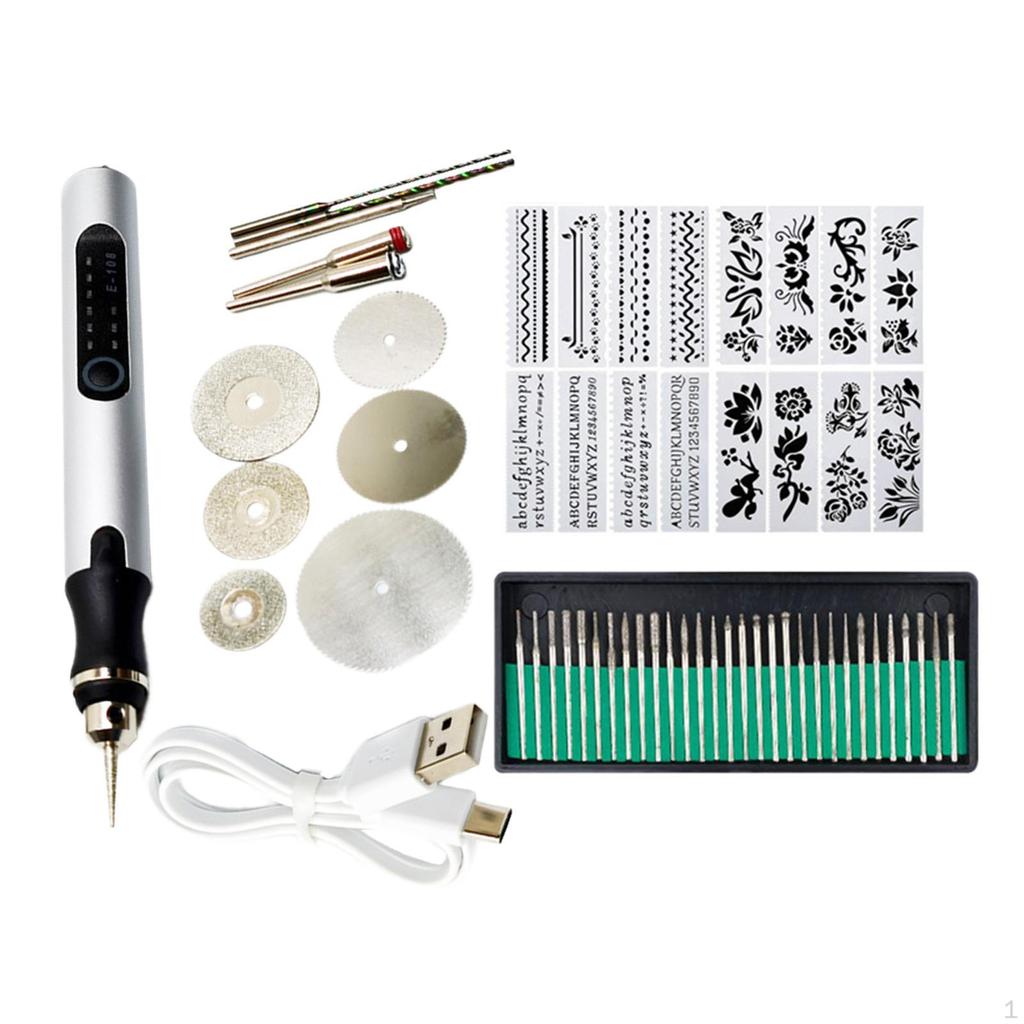 Комплект шлифовальных станков DIY: Включают в себя 1x гравировальная ручка, 1x кабель для передачи данных, 30x шлифовальные иглы, 16x шаблонов, 6x режущих частей, 2x шлифовальные иглы, 2x шатун, 2x сверла.