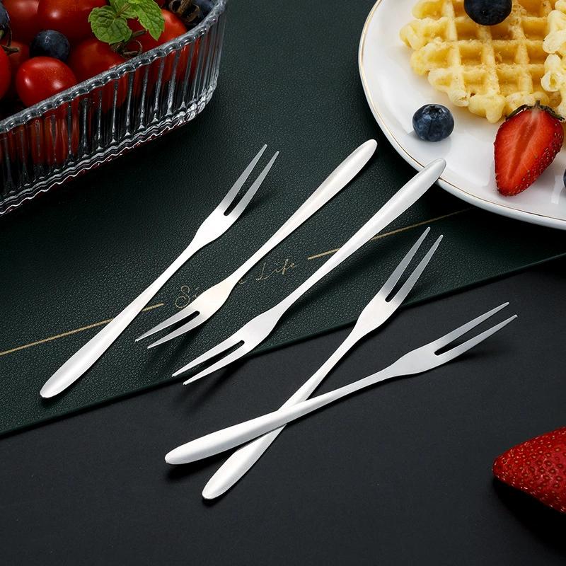 Вилка для фруктов из нержавеющей стали, западные столовые приборы, маленькая вилка, вилка с двумя зубцами, десертный торт