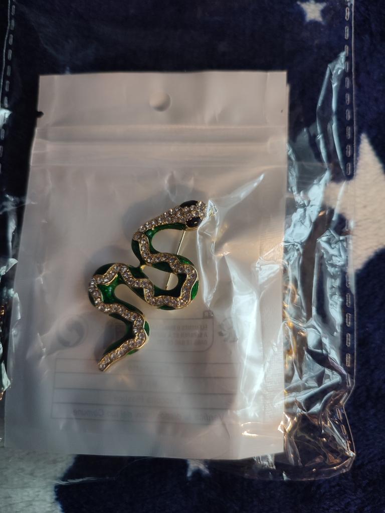 Брошь Змея.🐍 🔸️В преддверии Нового Года решила заказать брошь Змею - символ 2025 года. 🔸️Модель выполнена из бижутерного сплава и украшена россыпью переливающихся страз, а также имеются вставки из зеленой, блестящей эмали. Размеры броши 2,7* 5 см. 🔸️Змея — символ мудрости, силы, тайны и изменений. В восточной культуре Змею характеризуют, как мудрое, прозорливое и верное животное. Аксессуары со змеями символизируют возрождение, жизненный опыт и силу. 🔸️Брошь-талисман Змея - прекрасный вариант дополнения женского образа. 🔸️Рекомендую от души!