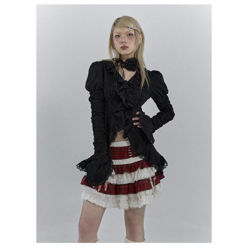 Новинка 2024 года, черная готическая кружевная рубашка, темные эстетические блузки нерегулярной формы, стиль Ямамото, гранж-рубашка с расклешенными рукавами и v-образным вырезом, винтажная рубашка Y2k