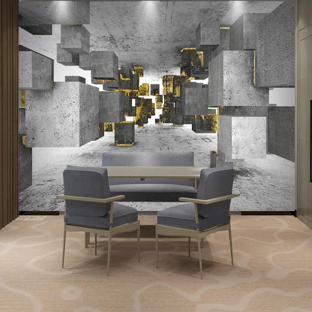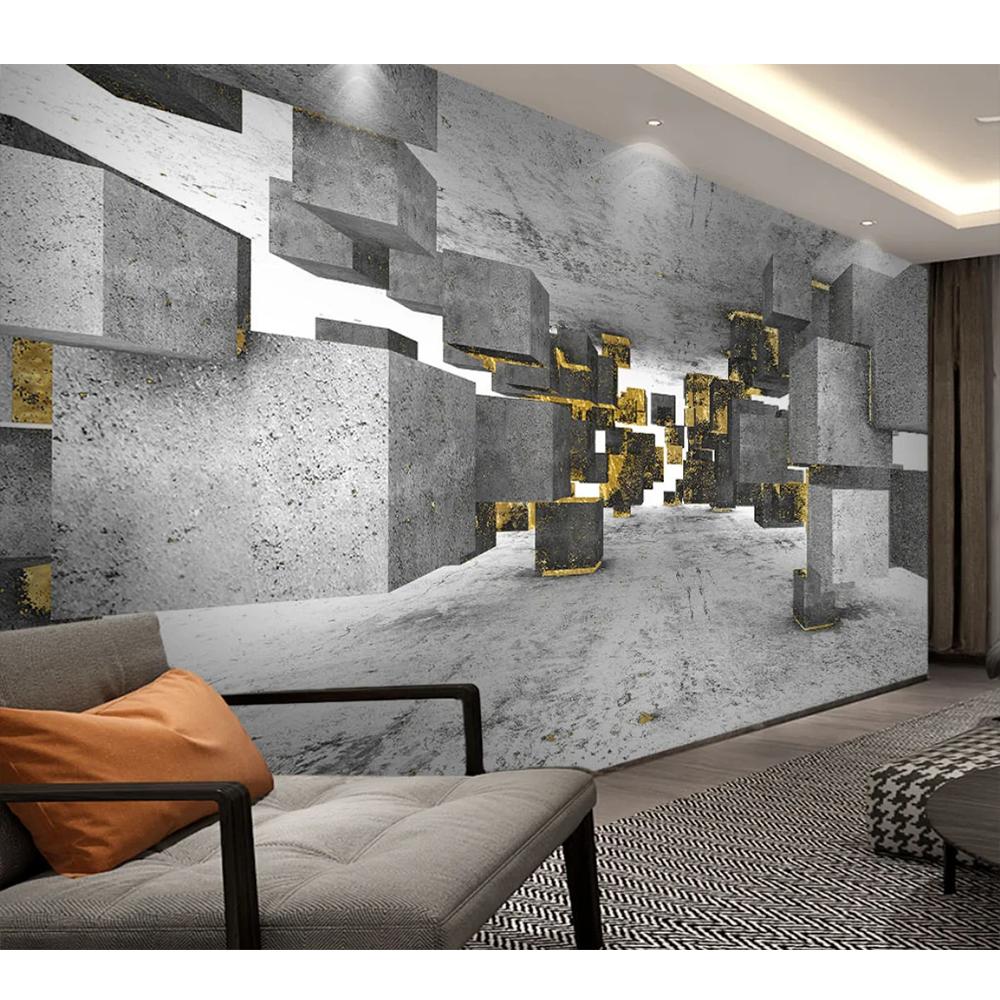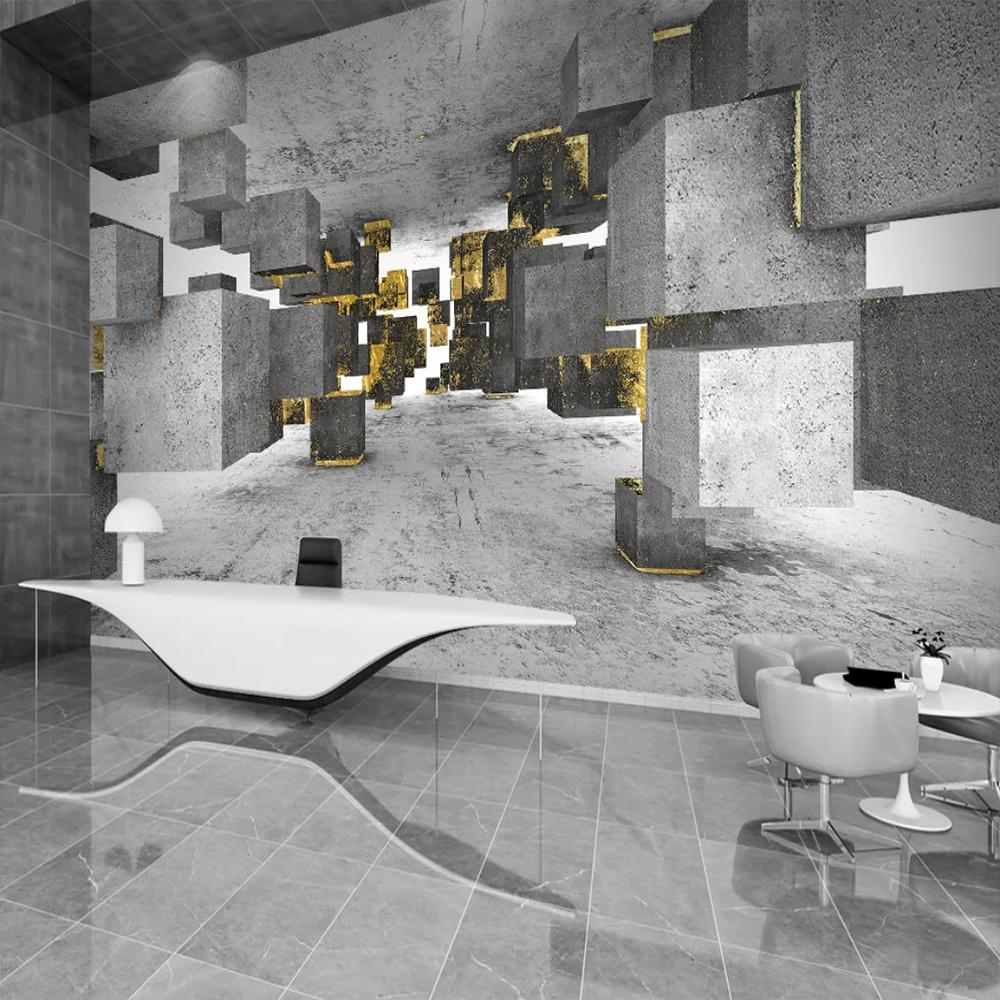 Фото 3d обои позолоченные минималистичные однотонные прямоугольные однотонные серые фрески Гостиная Спальня Настенная роспись