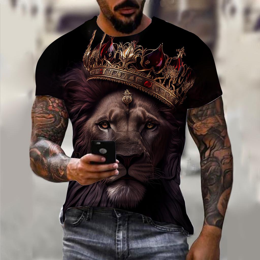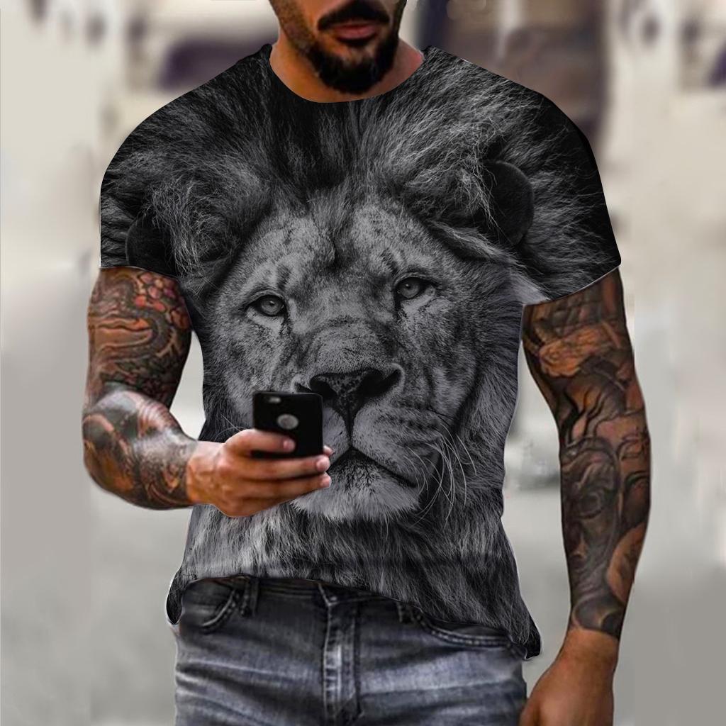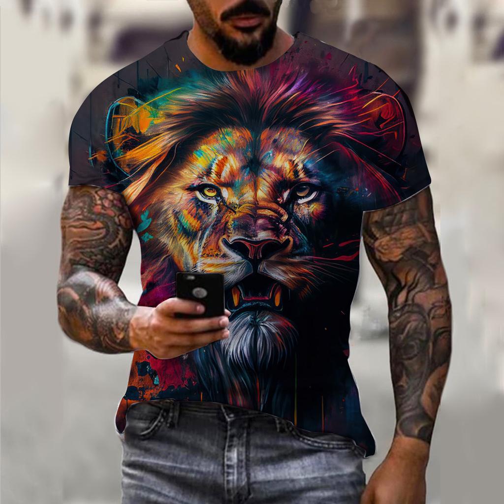 Летняя мужская винтажная футболка с графикой льва и 3D принтом, модная мужская одежда с короткими рукавами и тигром, футболки с волком, уличная одежда