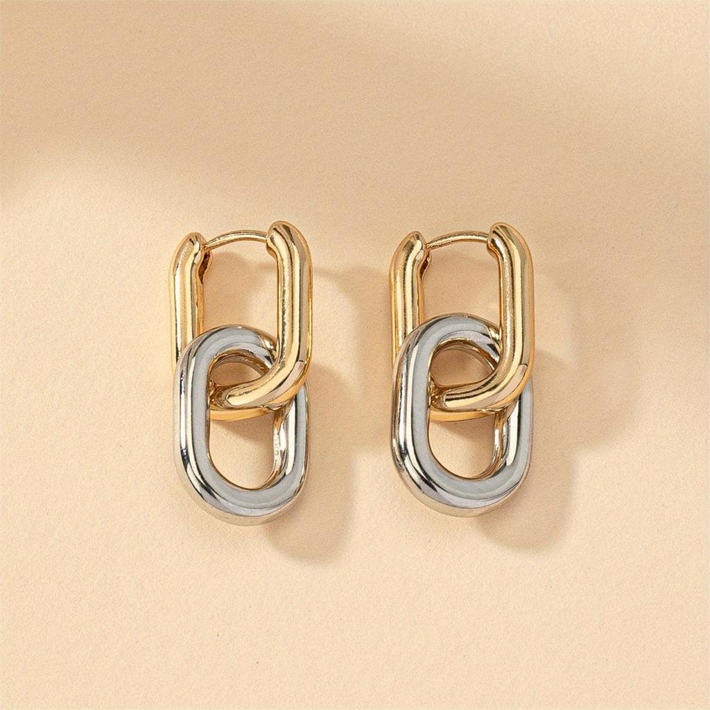 Минималистичный стиль, двухцветная цепочка, висячие серьги, простая цепочка золотистого и серебристого цвета, повседневная одежда, аксессуары для вечеринок, модные украшения