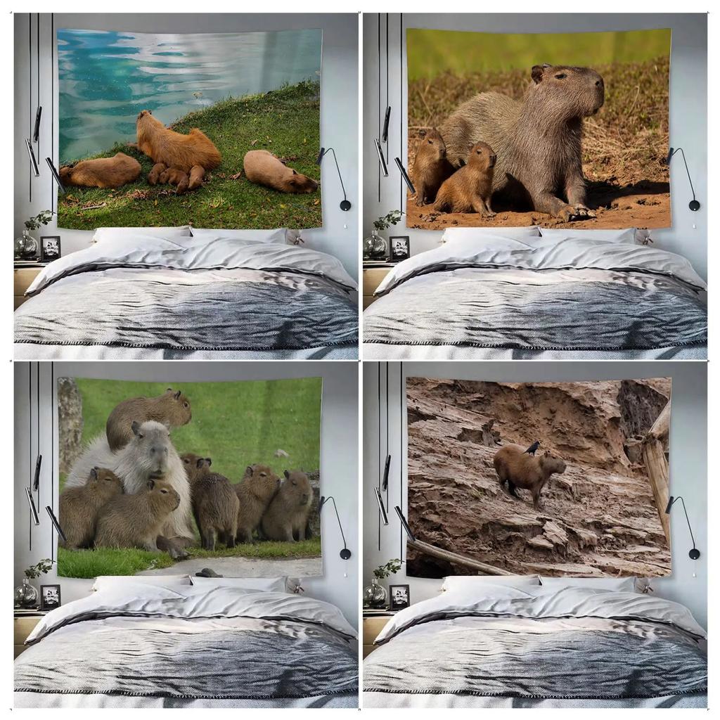 Гобелен с изображением животных капибары, украшение для офиса, гостиной, настенный гобелен для дома