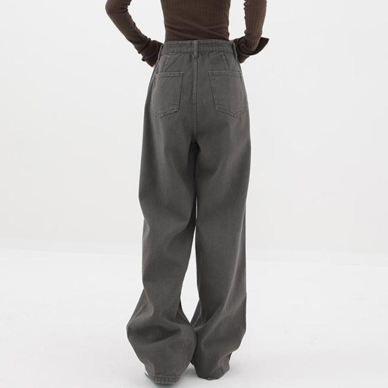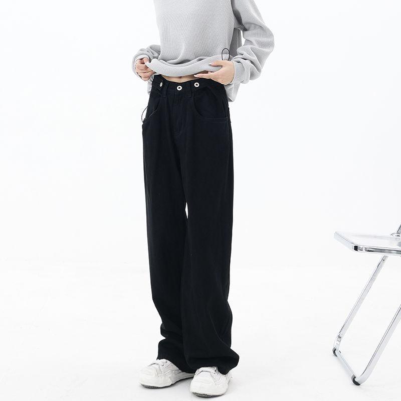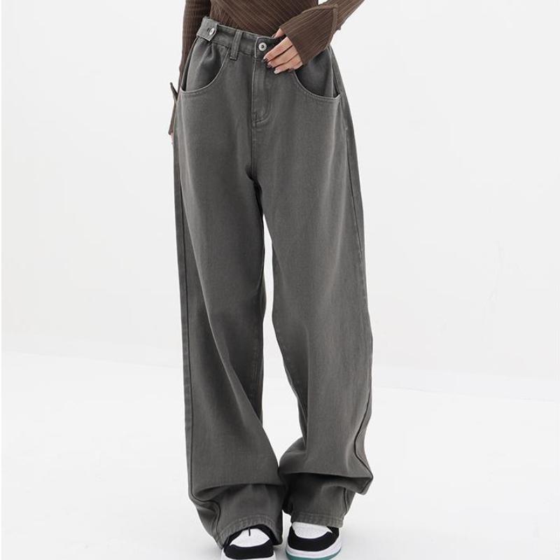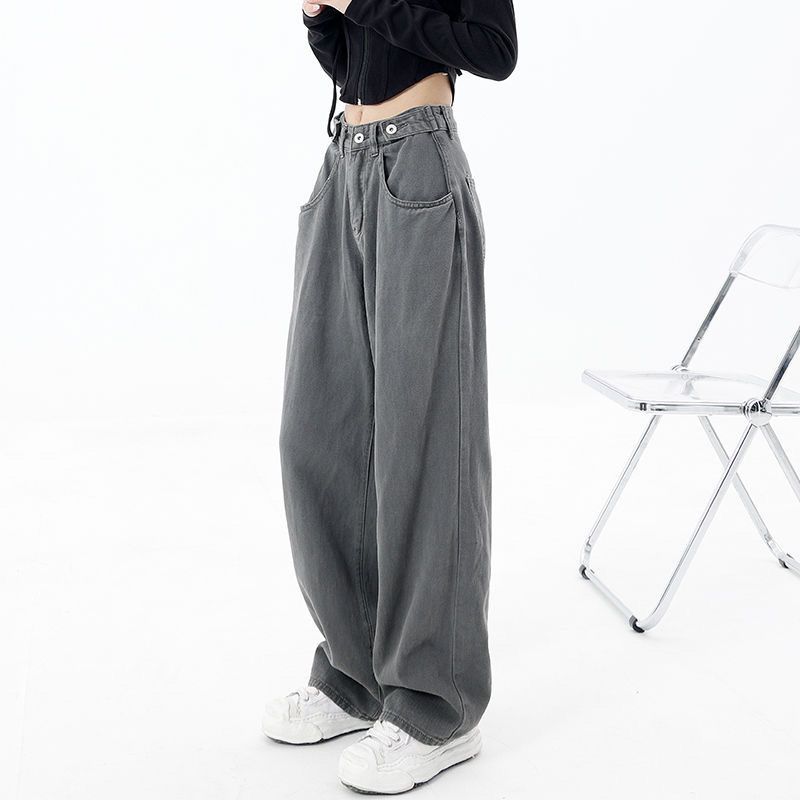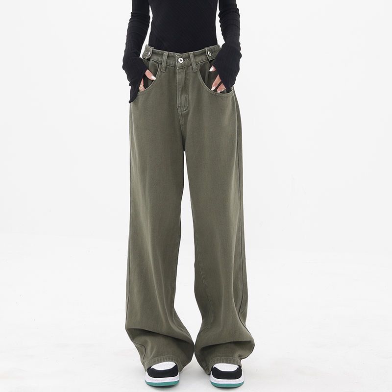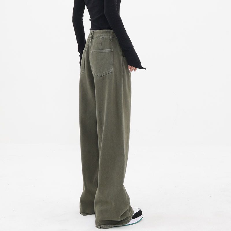 Женские прямые джинсы 2023, зимняя одежда, американские ретро-зеленые брюки с широкой талией Y2k, уличные свободные джинсовые брюки в стиле Харадзюку