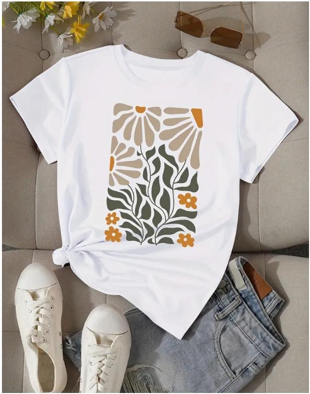 Модная женская креативная абстрактная футболка с принтом ромашки, забавная повседневная футболка с круглым вырезом и короткими рукавами, летняя женская футболка