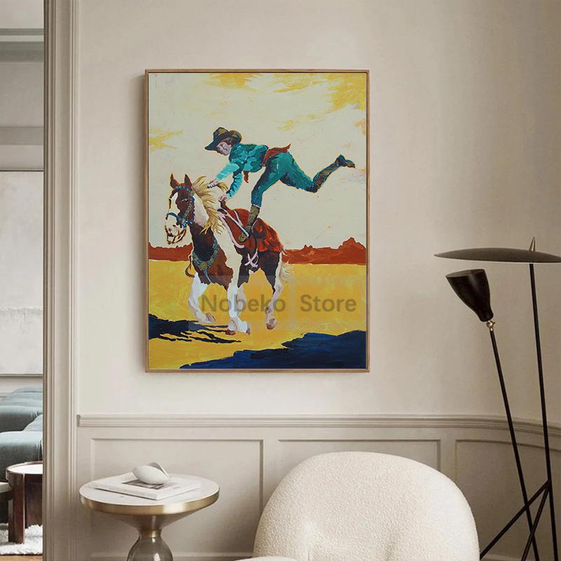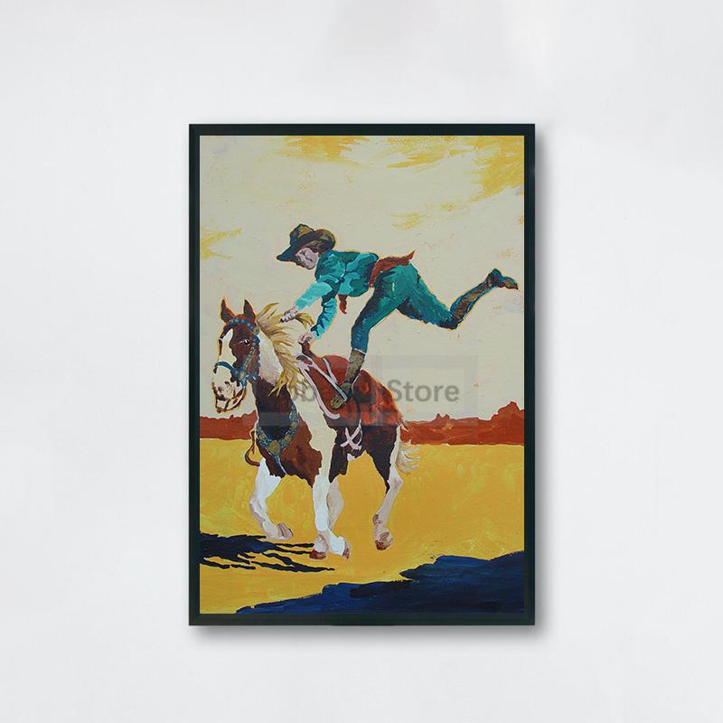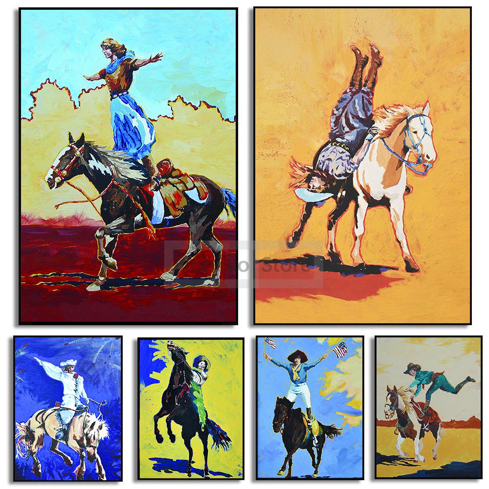 Ретро-постер с трюком наездница-ковбой, красочная абстрактная принты с изображением девушки-ковбоя, картины на холсте, настенные художественные картины, домашняя комната, винтажное украшение