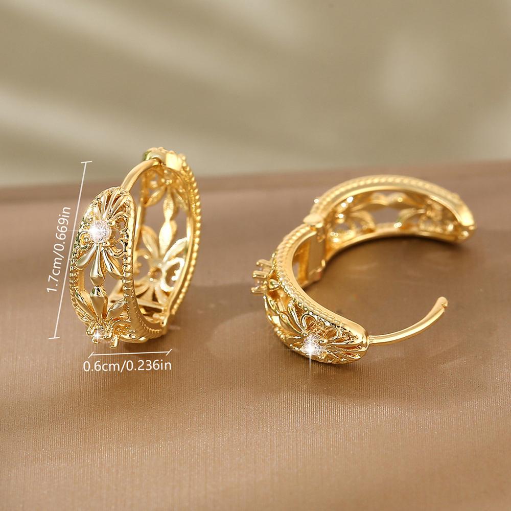 Роскошные серьги-кольца с цирконами золотого цвета в стиле ретро с цветочным узором, ажурные свадебные серьги-кольца для женщин, вечерние ювелирные изделия, подарок