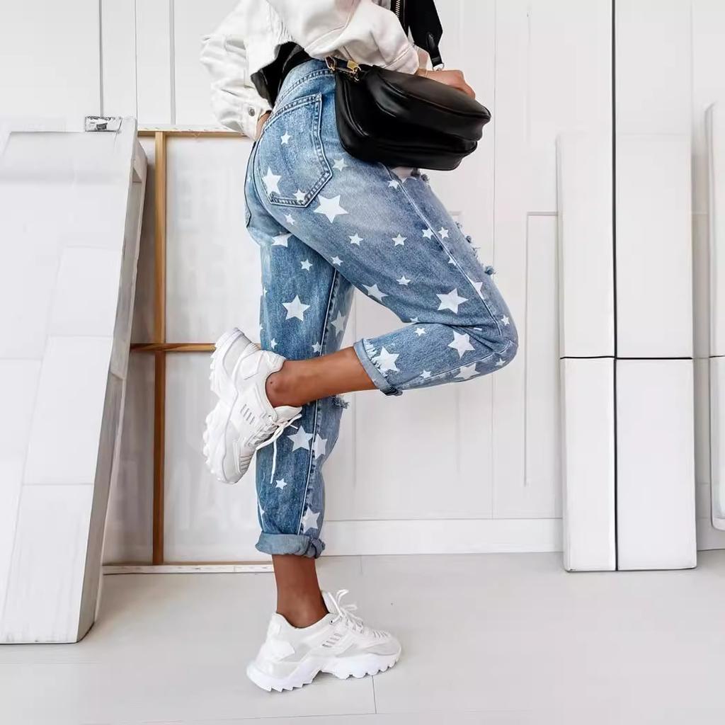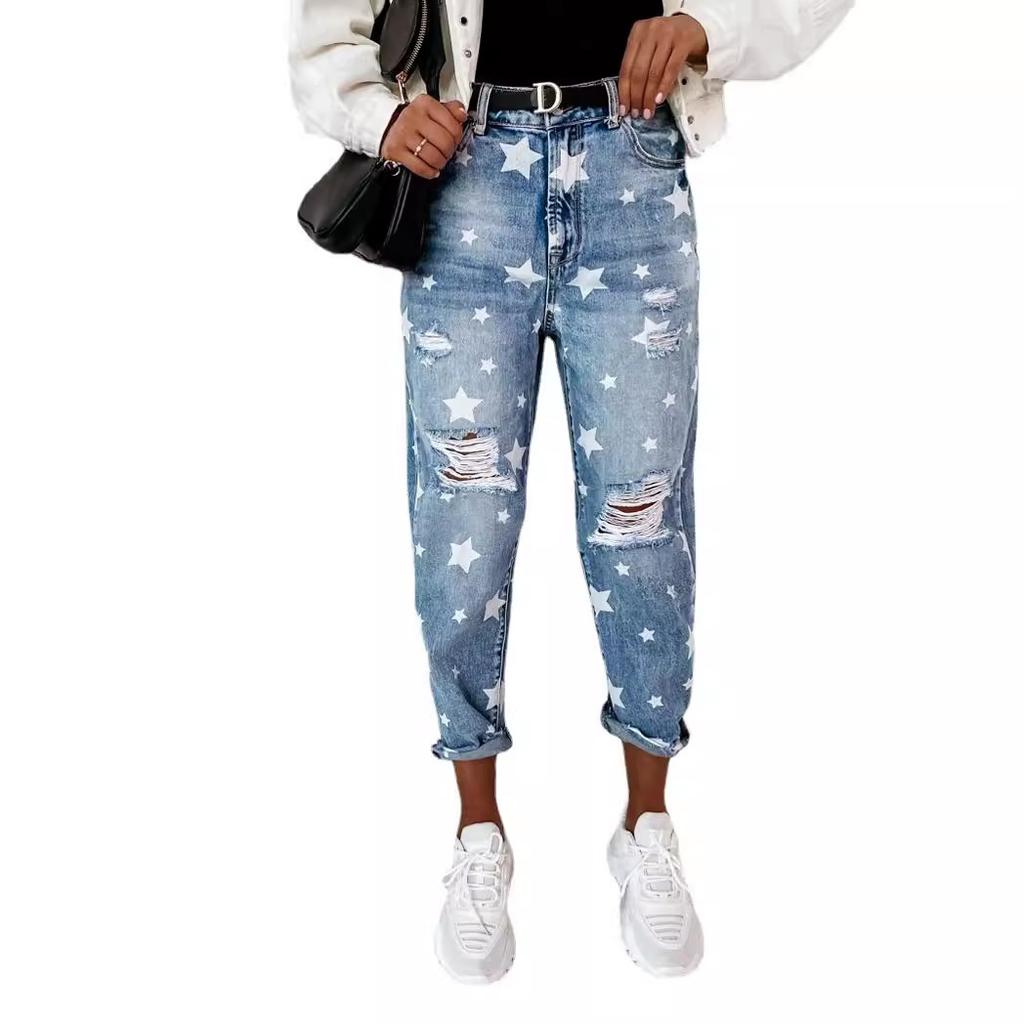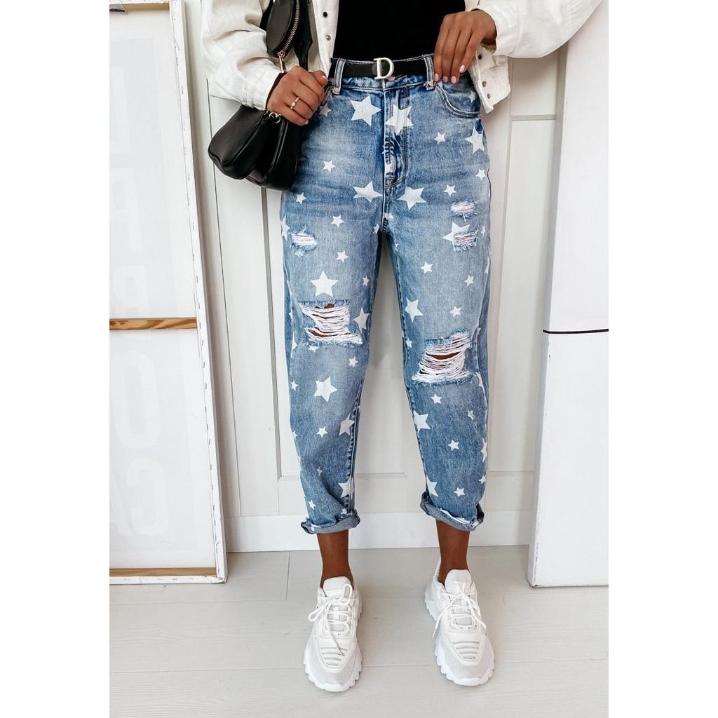 FiveFive женские винтажные джинсы с высокой талией, рваные эластичные джинсы, женские повседневные однотонные джинсовые брюки