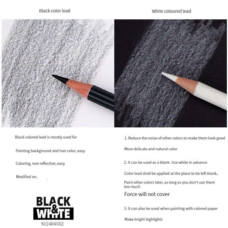 2/12 шт. черно-белых цветных карандашей - стойкие цветные карандаши для рисования на масляной основе, деревянные цветные карандаши для художников и начинающих художников