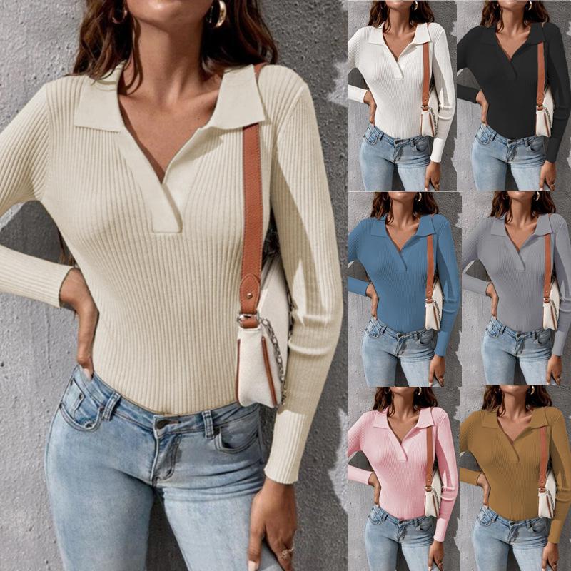 Осень-зима женский трикотаж с длинным рукавом и лацканами вязаный свитер сексуальный тонкий повседневный пуловер топы — купить товар онлайн с бесплатной доставкой по всему миру!