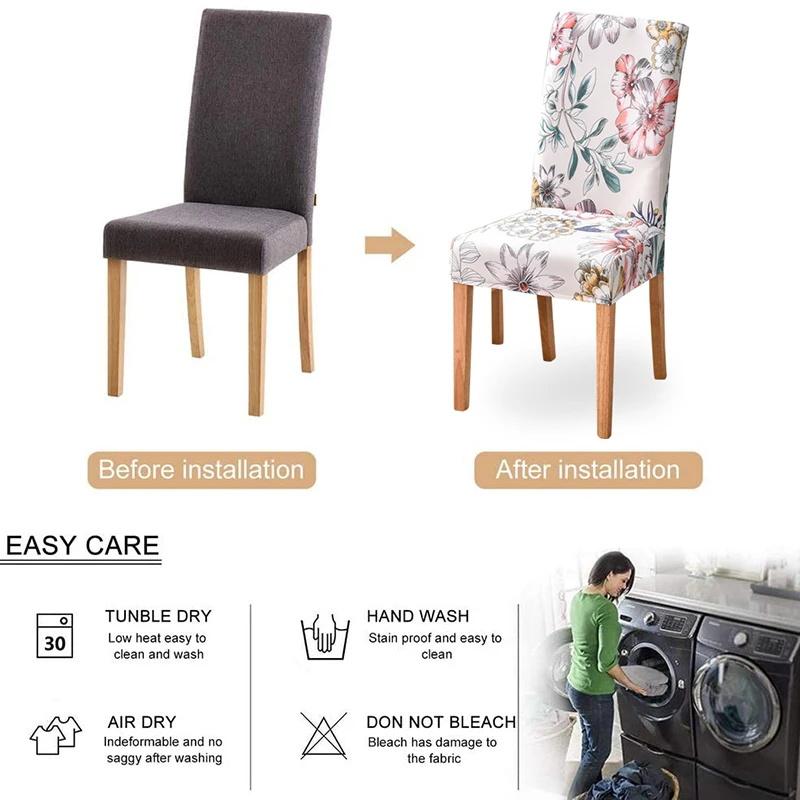 【Простота в использовании】наши чехлы на кухонные стулья можно стирать в машине, их легко чистить и обслуживать.. Легко установить и снять, всего за несколько шагов, и вы приобретете новый вид. Мы стремимся предоставить вам качественные чехлы на обеденные стулья и дружелюбное обслуживание.