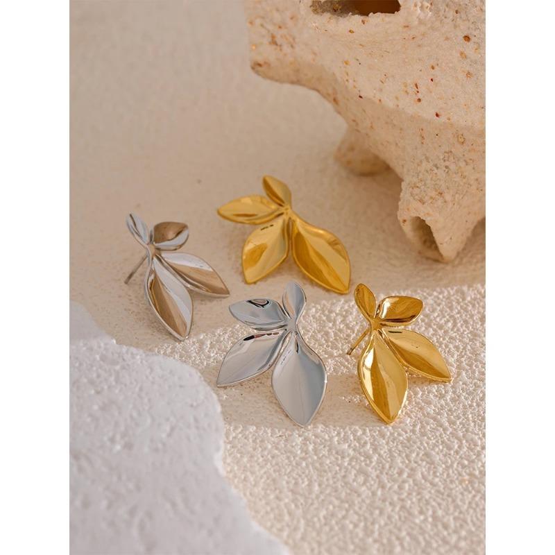 Модные серьги-гвоздики из нержавеющей стали с листьями и цветами, яркие, антиаллергенные, водонепроницаемые, с очаровательной текстурой, ювелирные изделия высокого качества