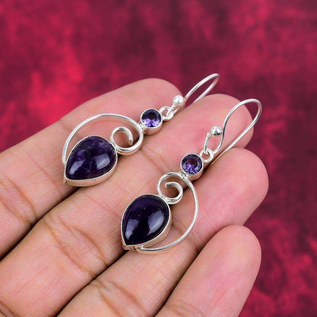 Серьги с аметистом, ювелирные изделия из драгоценных камней, серьги из цельного серебра 925 пробы, подарок для женщин, серьги ручной работы