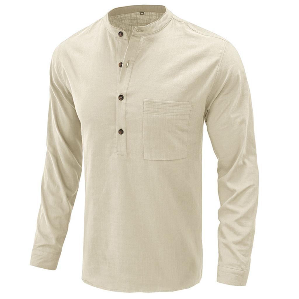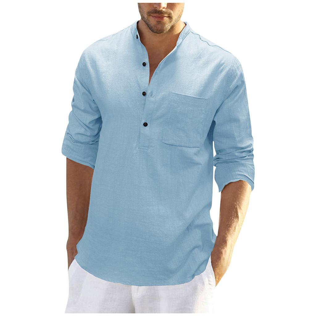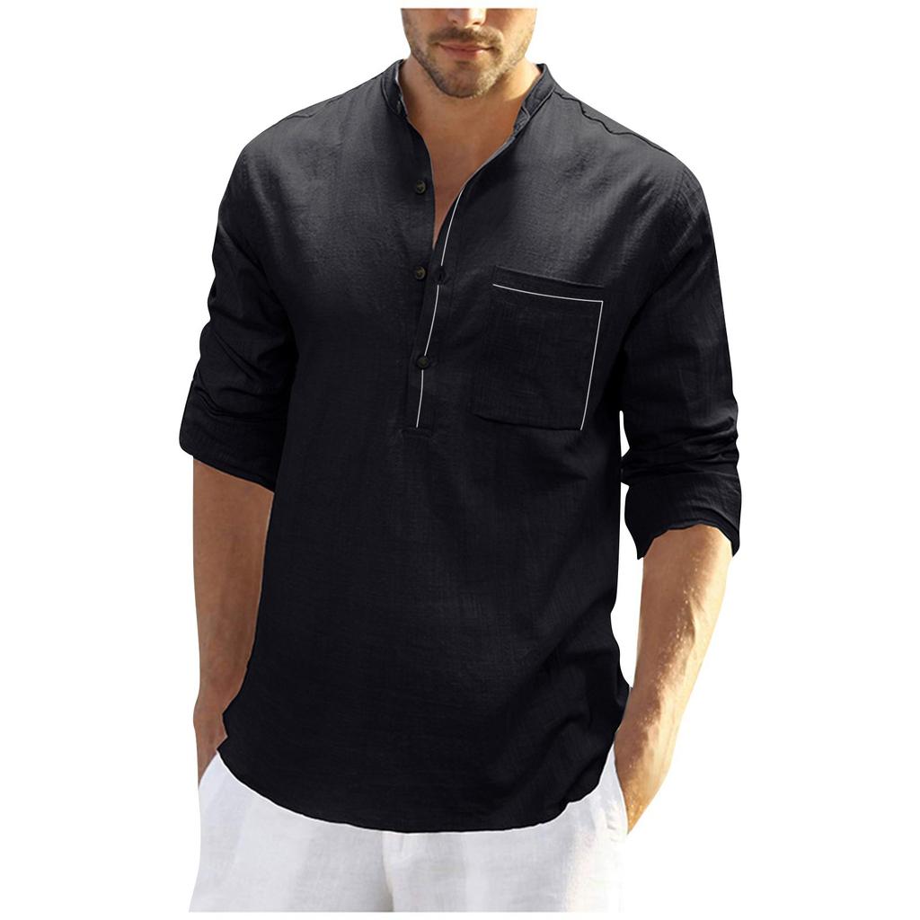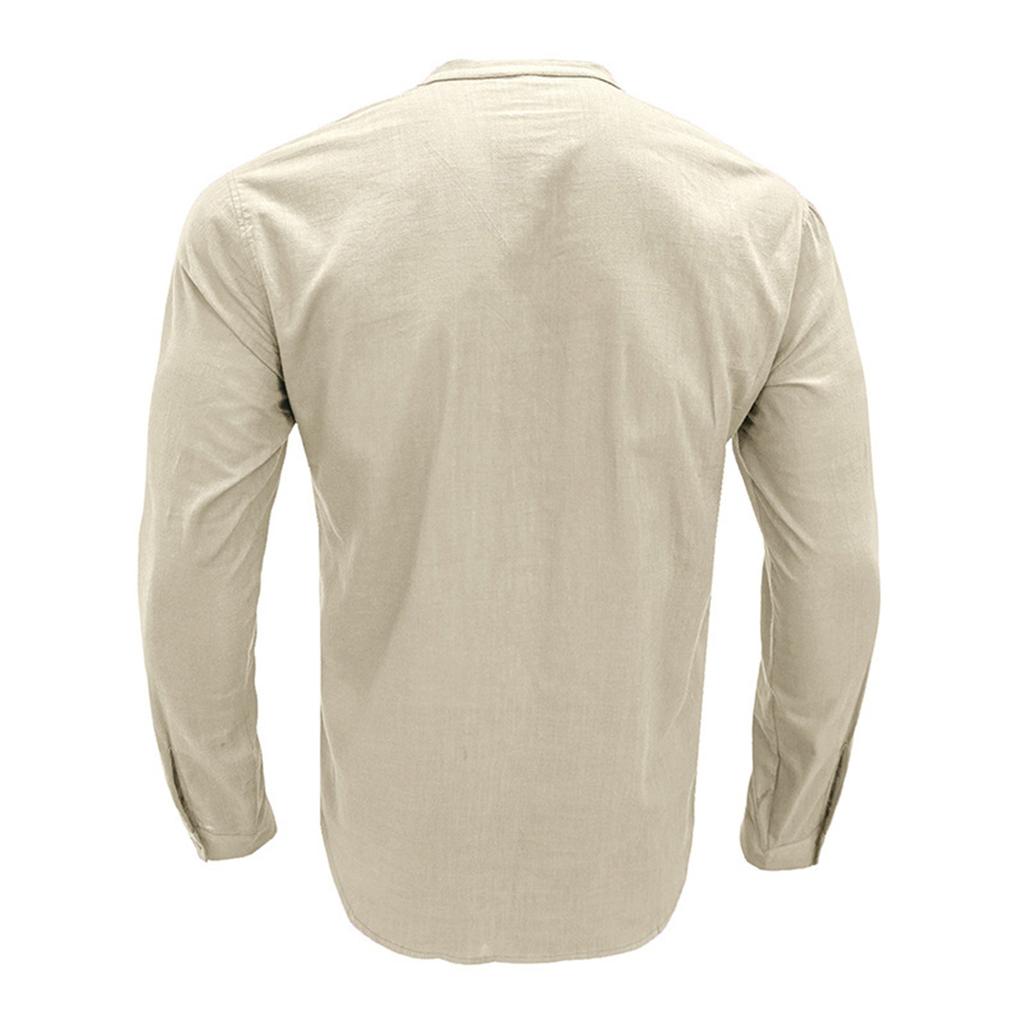 Мужская льняная рубашка с длинным рукавом и воротником-стойкой