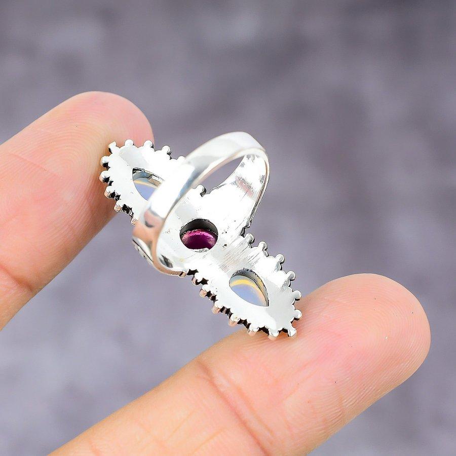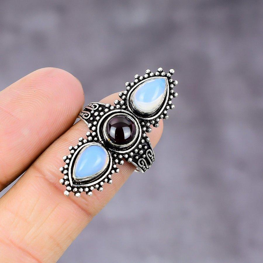 Кольцо из серебра 925 пробы с натуральным гранатом гессонитом, опалом, размер 8 N2z58