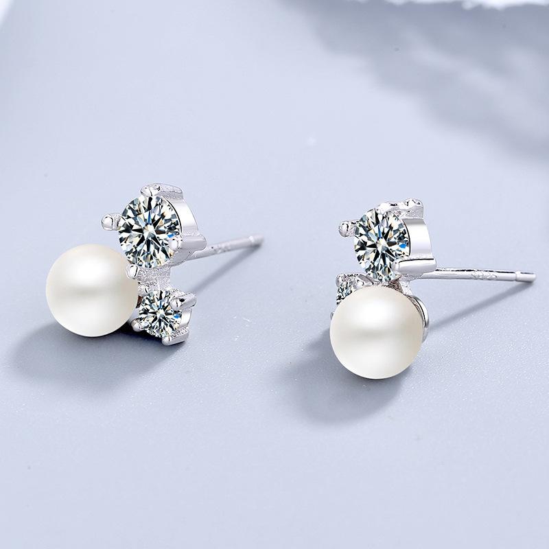 Женские серьги-гвоздики из стерлингового серебра S925 с жемчугом и жемчугом Простой и свежий универсальный изящный орнамент