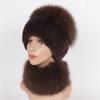 Новые зимние женские роскошные шапки из натурального лисьего меха, комплекты шарфов, натуральный мягкий вязаный теплый топ из меха кролика рекс, шапки из лисьего меха, шарфы, 2 шт.