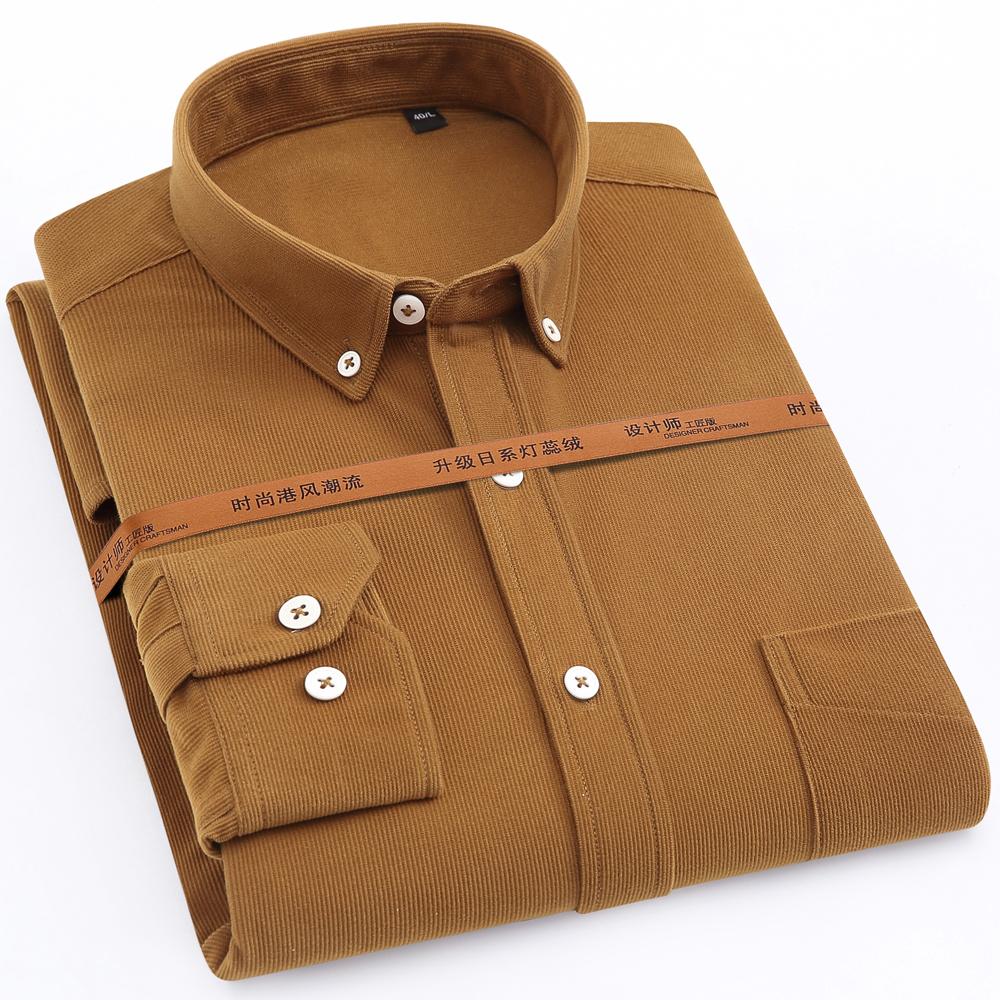 Весенне-осенние повседневные вельветовые рубашки с длинными рукавами, удобная мягкая мужская рубашка на пуговицах стандартной посадки